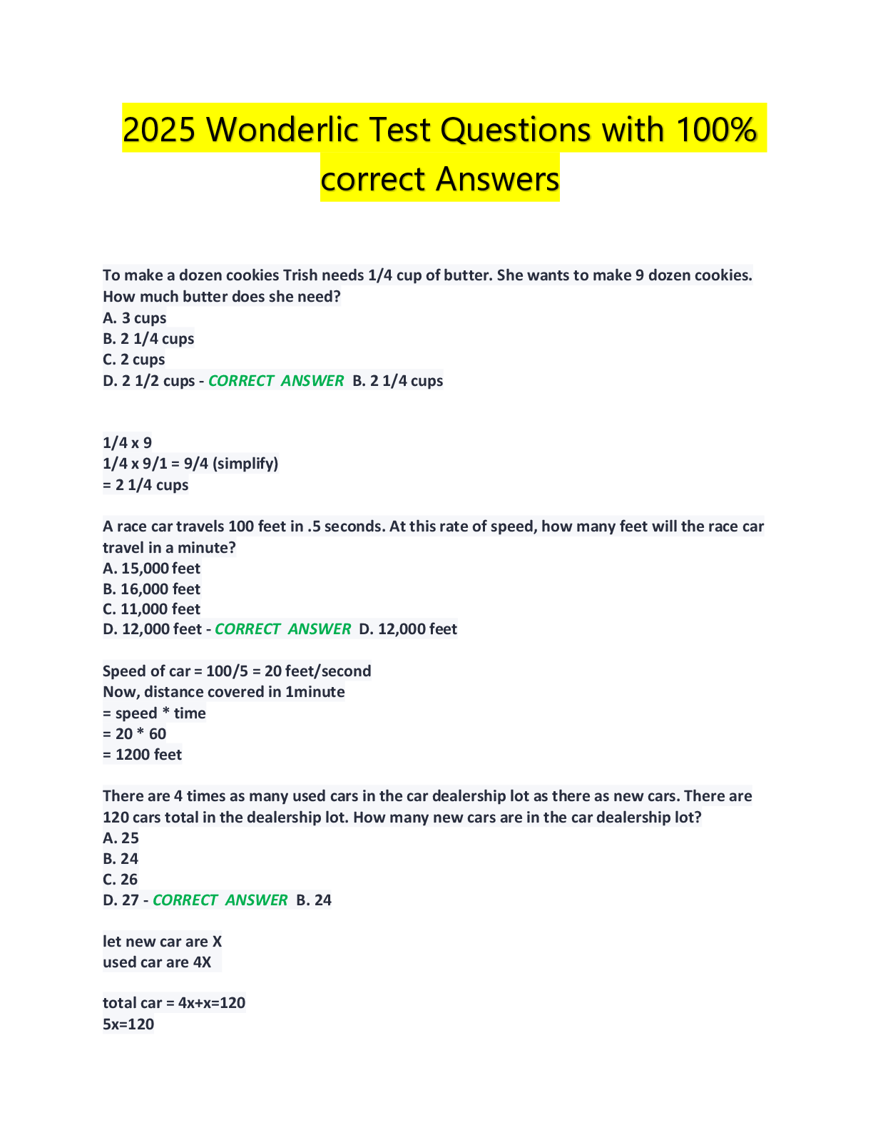 Mathematics > QUESTIONS & ANSWERS > 2025 Wonderlic Test Questions with 100% correct Answers (All)