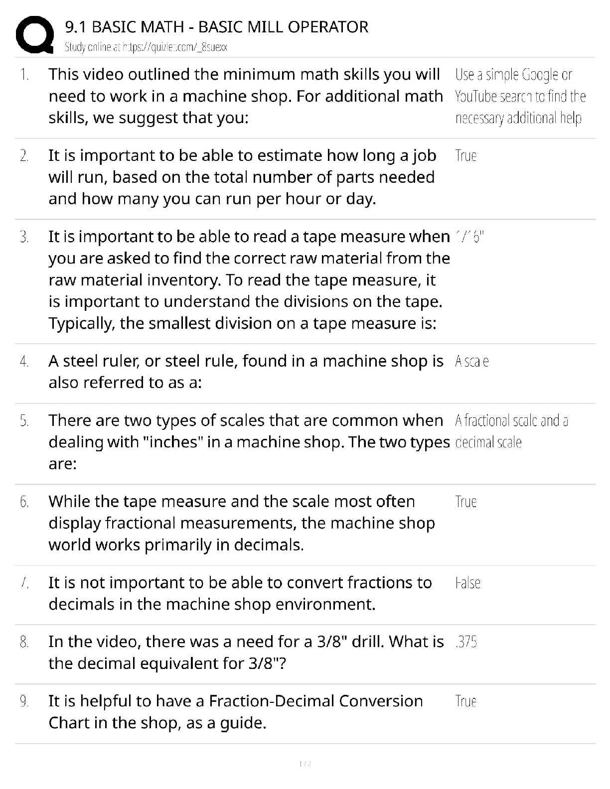 Mathematics > QUESTIONS & ANSWERS > 9.1 Basic Math / Basic Mill Operator Guide / 2025 Update / Score 100% (All)