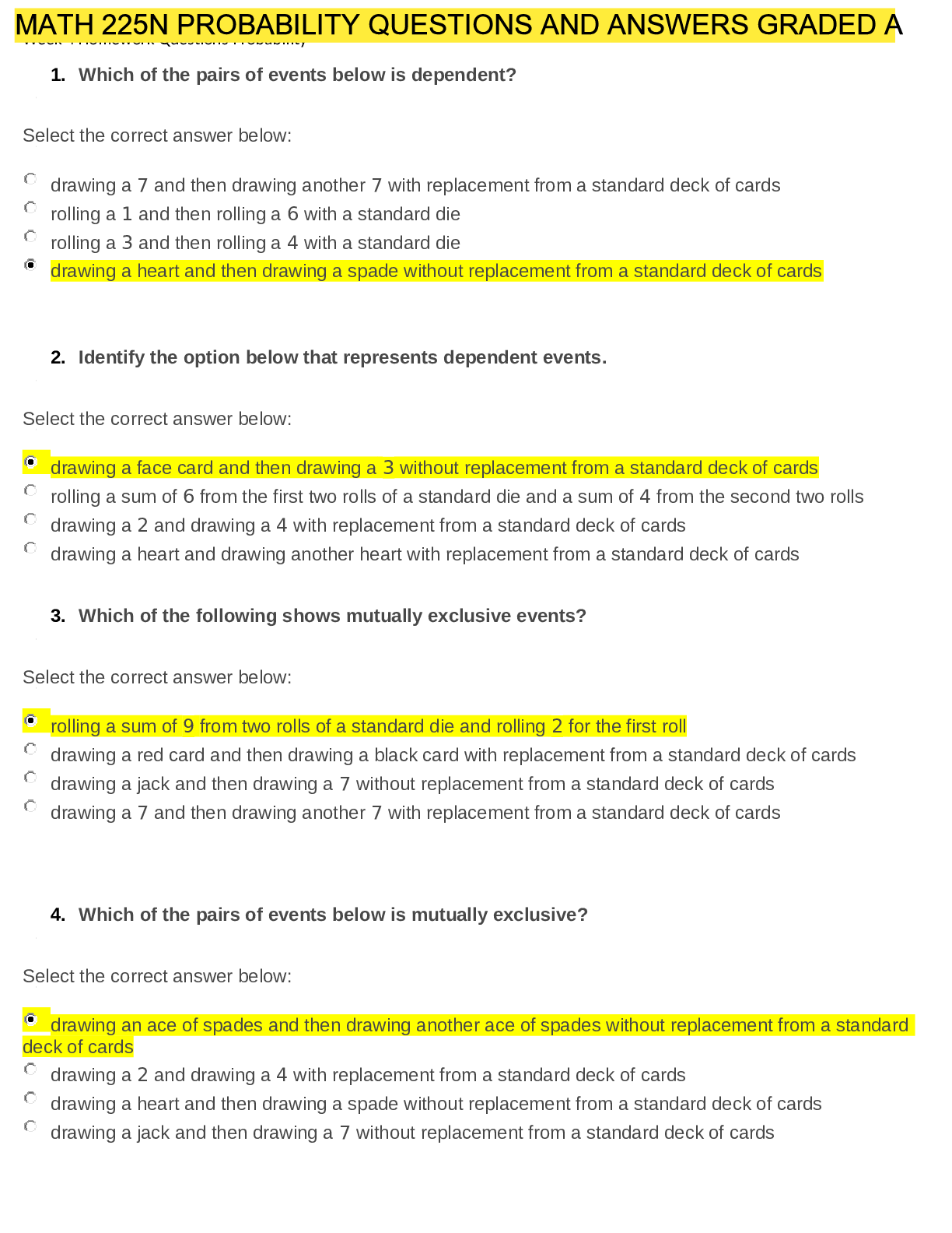 Mathematics > QUESTIONS & ANSWERS > Week 4 Homework Questions Probability (All)