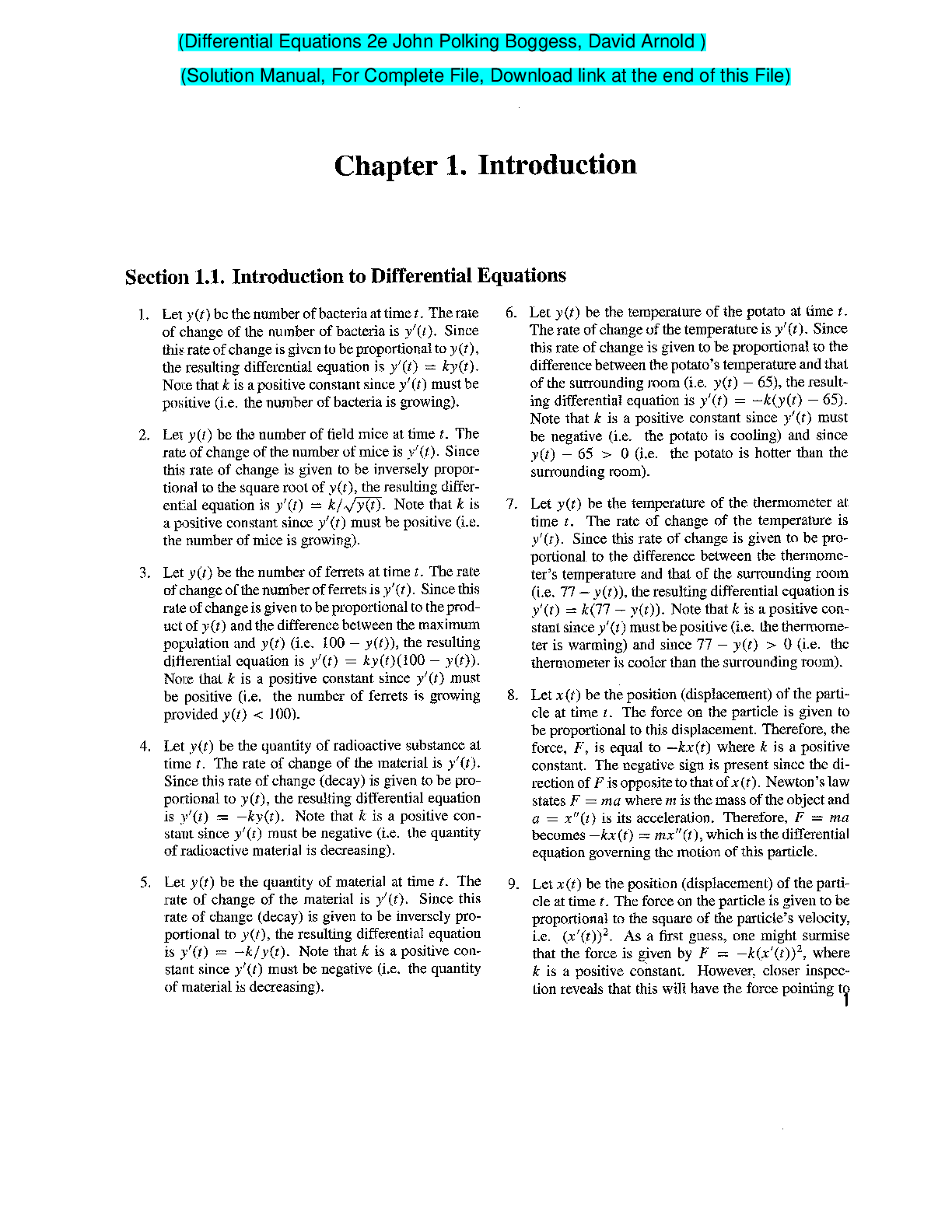 Mathematics > SOLUTIONS MANUAL > Differential Equations 2e John Polking Boggess, David Arnold (Solution Manual) (All)