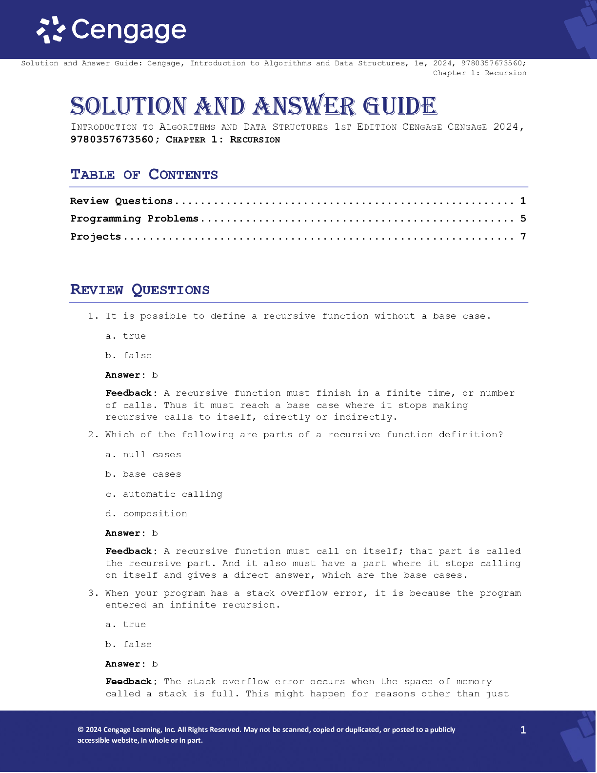 Mathematics > SOLUTIONS MANUAL > Solution Manual For Introduction to Algorithms and Data Structures 1st Edition by Cengage Cengage Chapter 1-10 (All)