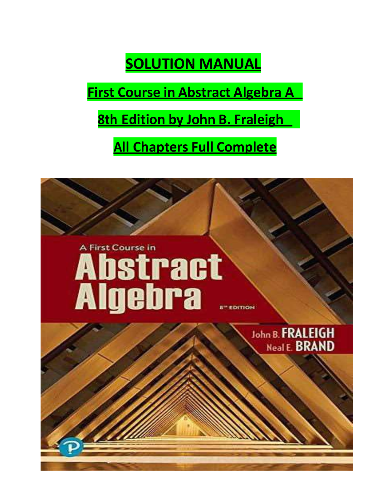 Mathematics > SOLUTIONS MANUAL > SOLUTION MANUAL First Course in Abstract Algebra A 8th Edition by John B. Fraleigh All Chapters Full Complete (All)
