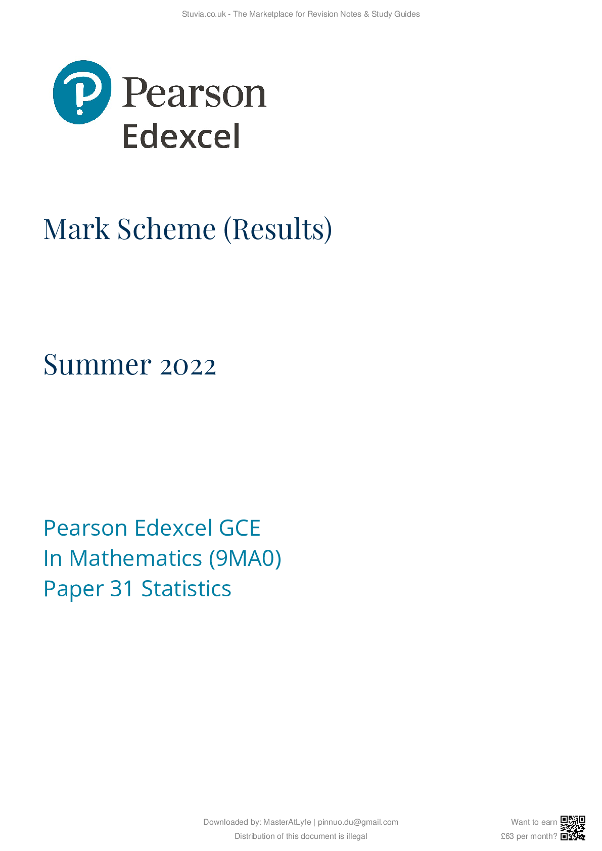 Mathematics > A-Level Mark Scheme > Edexcel A Level Maths Mark scheme 2022 June Statistics (All)