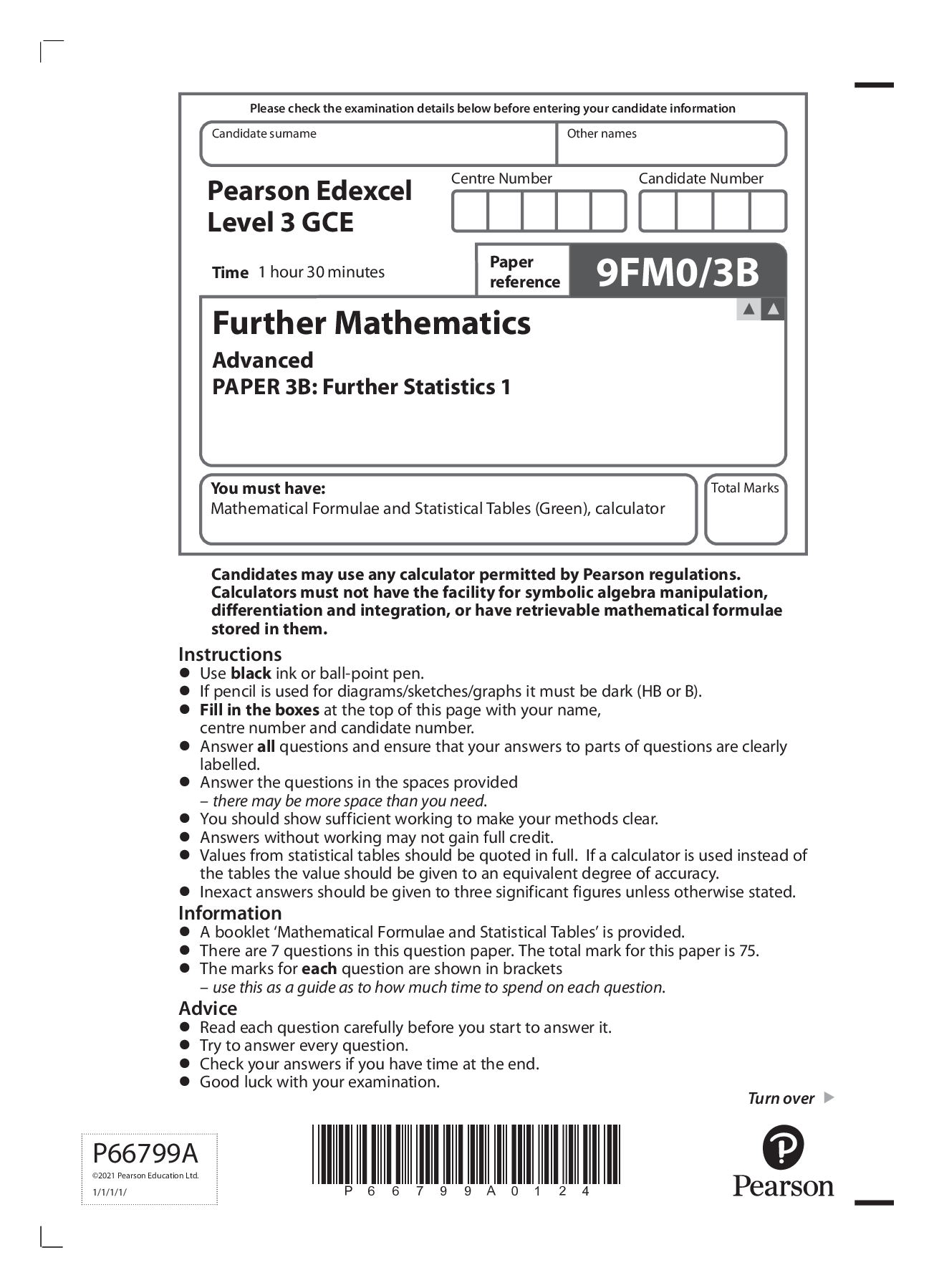 Mathematics > QUESTION PAPER & MARK SCHEME > Pearson Edexcel Level 3 GCE Further Mathematics Advanced Subsidiary Further Mathematics options 23: Further Statistics 1 (Part of options B, E, F and G). question booklet and mark scheme results November 2021 (All)