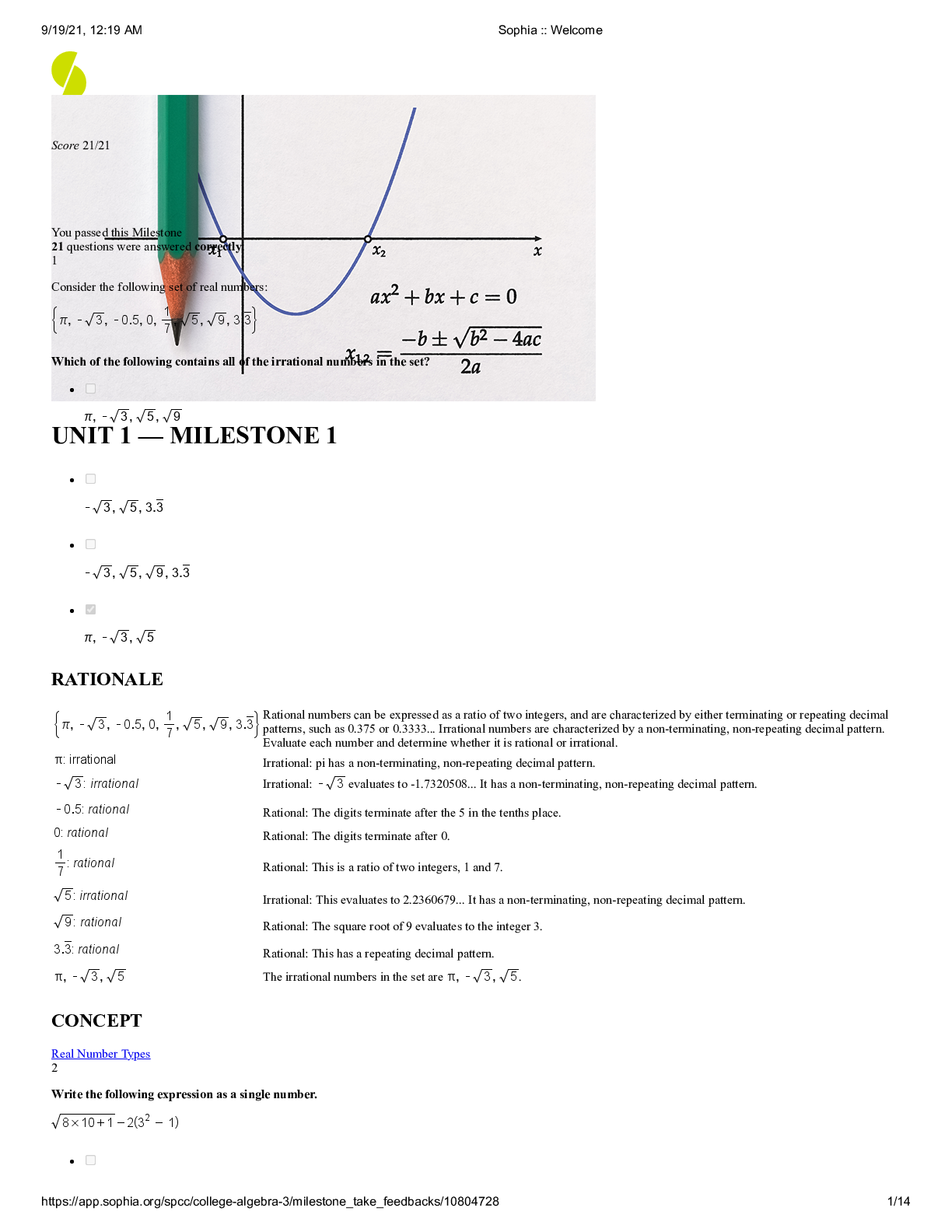 Mathematics > EXAM > Sophia Unit 1 Milestone 1 College Algebra with correct answers (All)