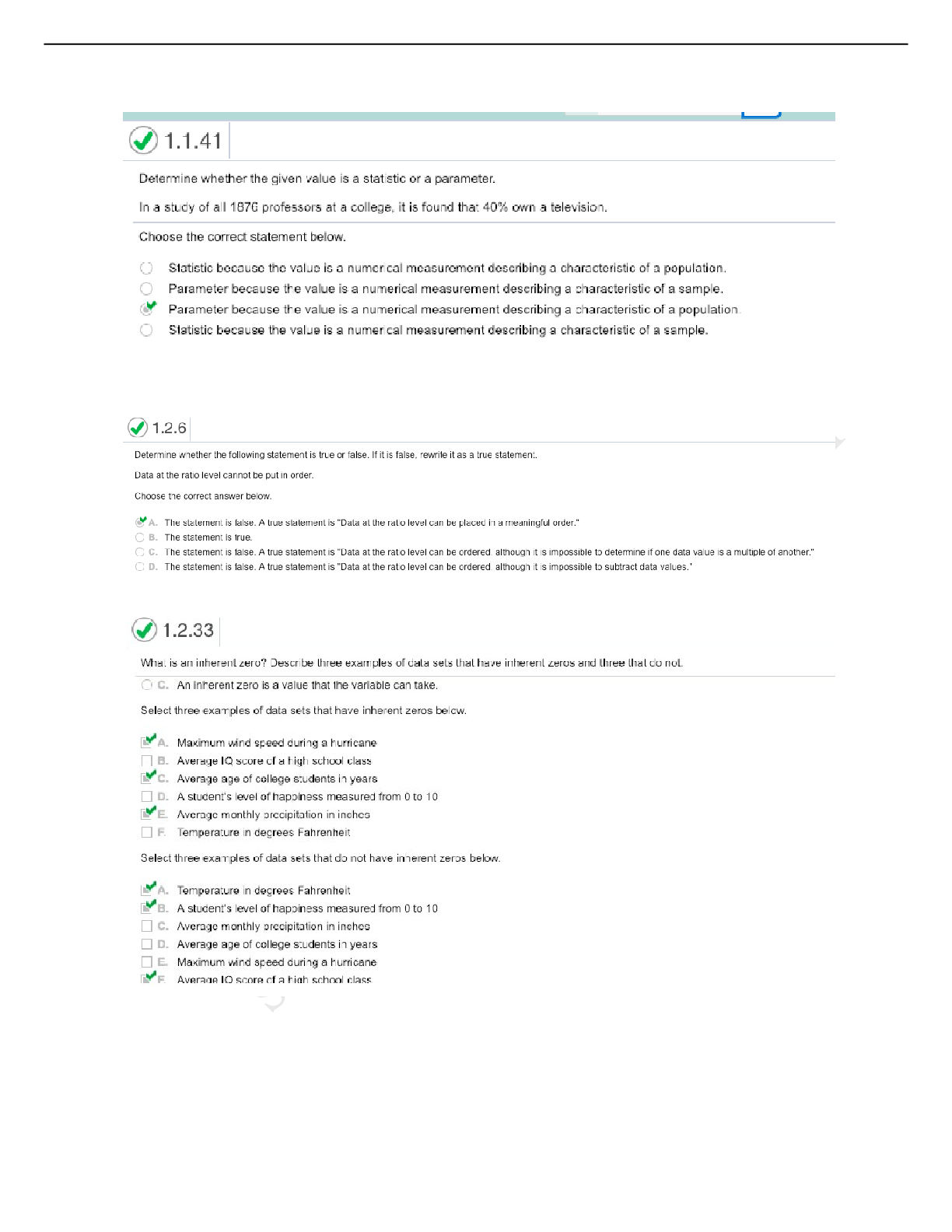 Mathematics > EXAM > MATH 399N Week 3 MyStatLab Quiz (Version 1)_ Rated A. (All)