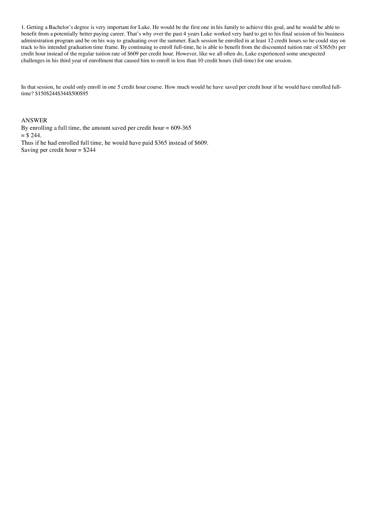 Mathematics > EXAM > In that session, he could only enroll in one 5 credit hour course. (All)