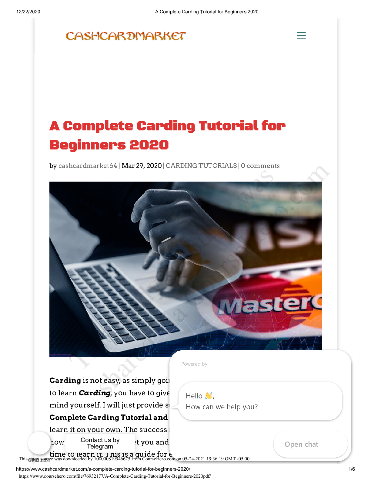 Mathematics > STUDY GUIDE > A Complete Carding Tutorial for Beginners 2020 by cashcardmarket64 | Mar 29, 2020 | CARDING TUTORIALS (All)