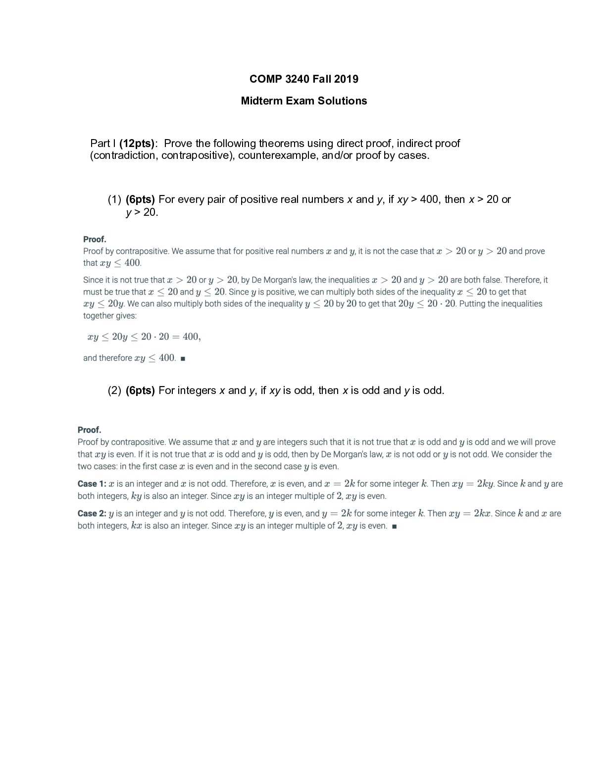 Mathematics > SOLUTIONS MANUAL > University of Wisconsin COMP SCI MISC Midterm-I-Solutions. COMP 3240 Fall 2019 Midterm Exam Solutions. Contains 44 questions; The most commonly tested. Correct Answers Indicated by this sign *. (All)