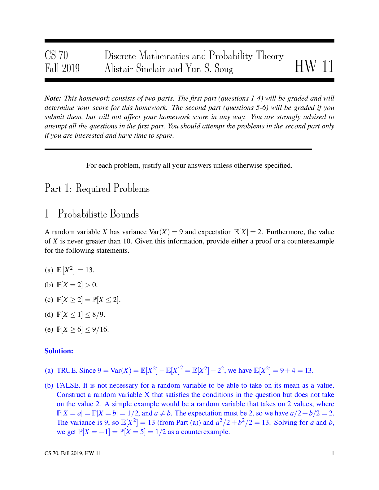 Mathematics > QUESTIONS & ANSWERS > University of California, Berkeley - CS 70 Discrete Mathematics and Probability Theory Spring 2017 HW 10 _With Worked Solutions (All)