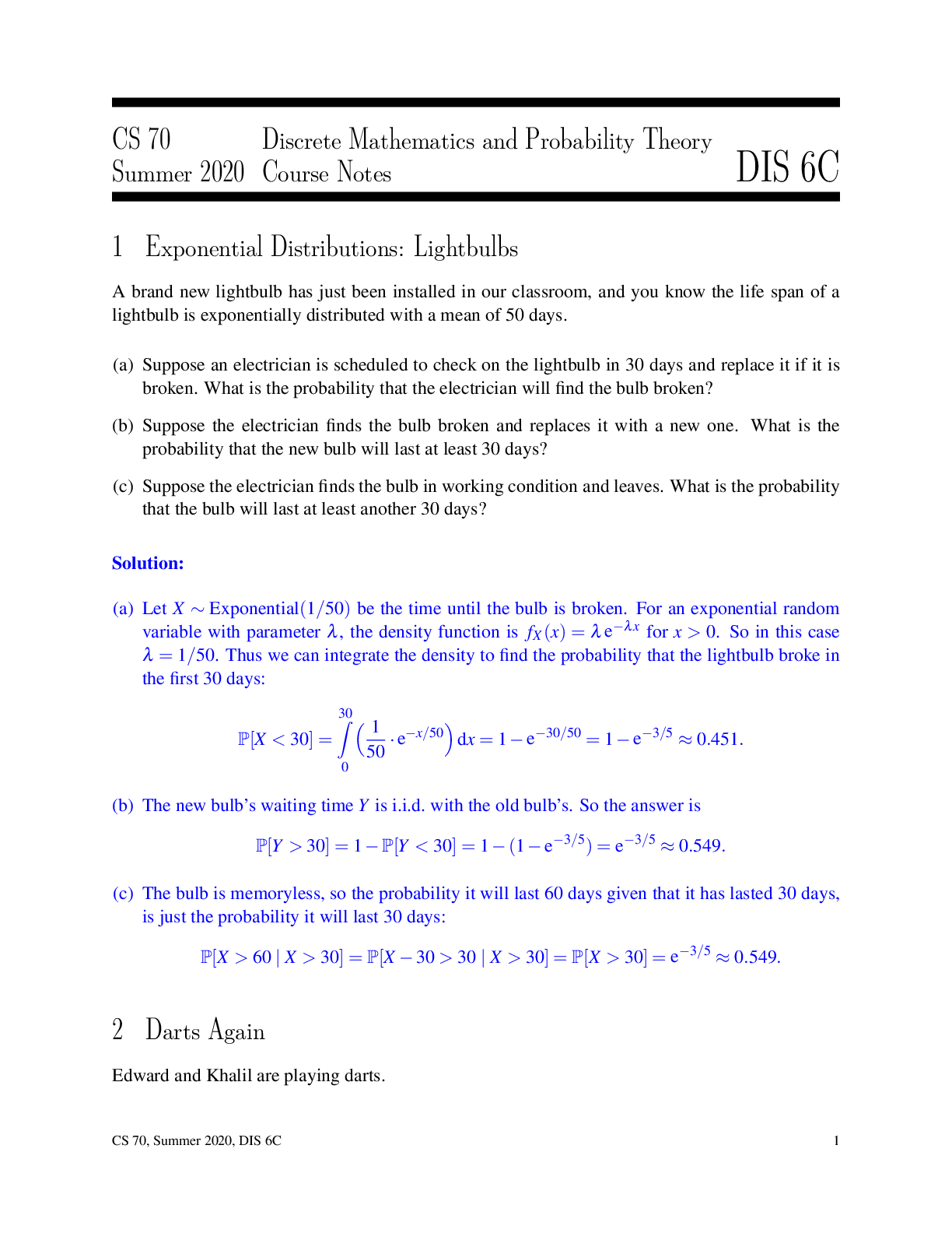 Mathematics > QUESTIONS & ANSWERS > University of California, Berkeley - CS 70 dis6B- Solution. CS 70 Discrete Mathematics and Probability Theory Summer 2020. Questions and Answers. (All)