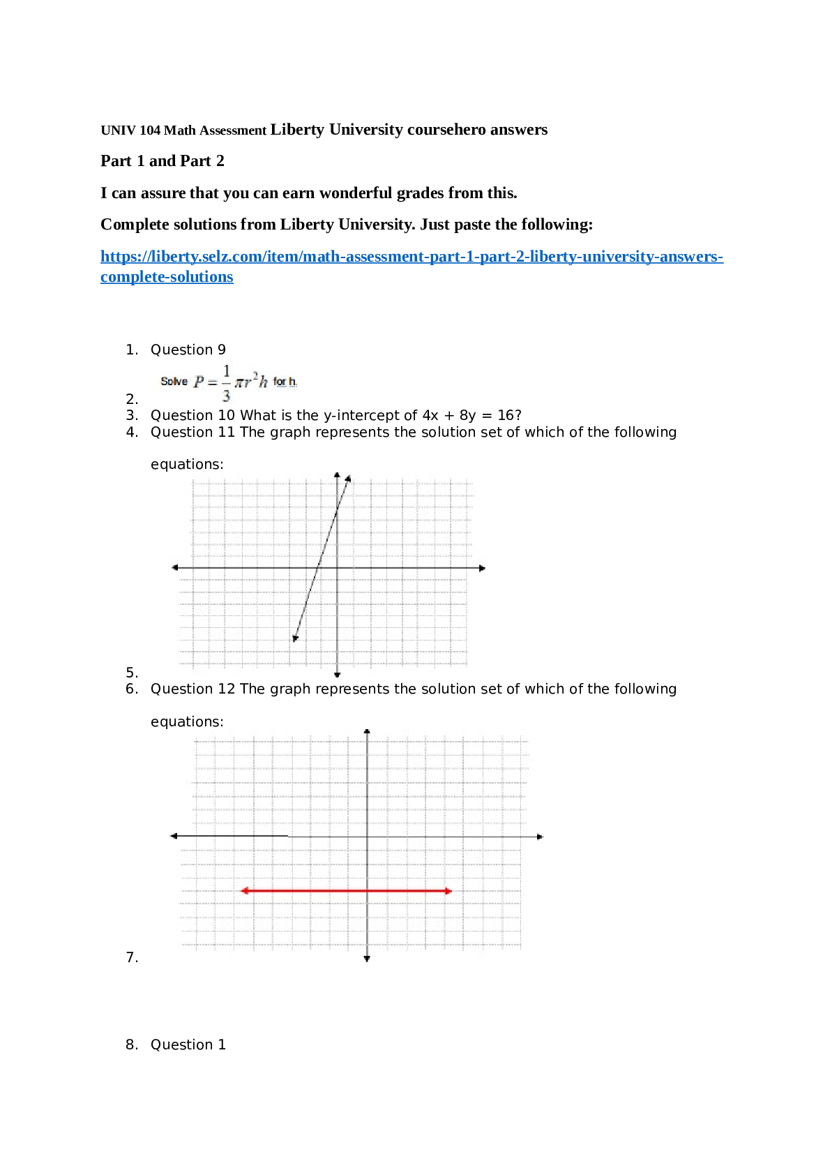 Mathematics > QUESTIONS & ANSWERS > UNIV 104 Math Assessment Liberty University coursehero answers (All)