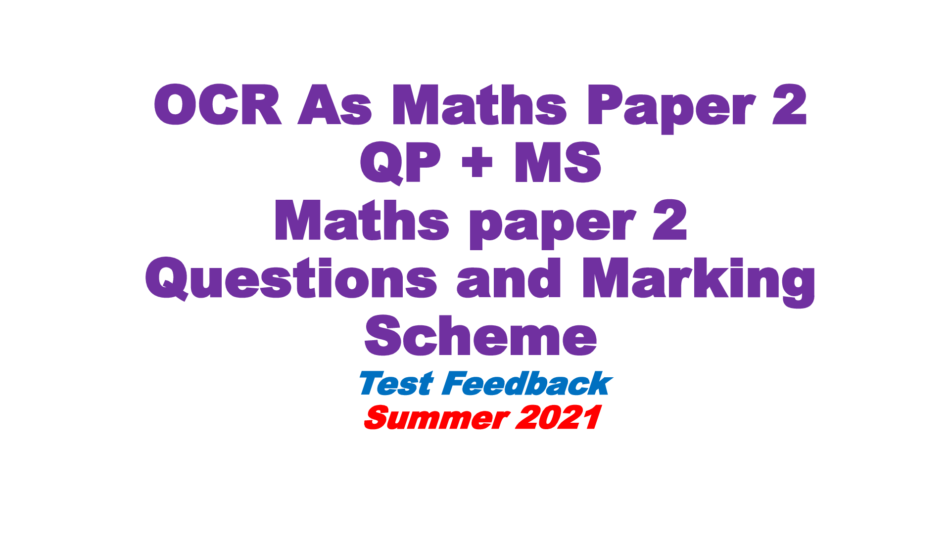 Mathematics > EXAM > OCR As Maths Paper 2 MS Maths paper 2 Marking Scheme + Test Feedback Summer 2021 (All)