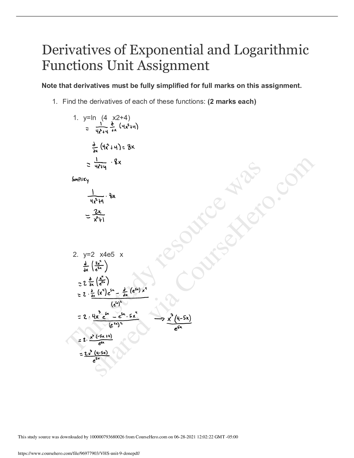 Mathematics > QUESTIONS & ANSWERS > Dr. Frank J. Hayden Secondary SchoolMATH 4UVHS unit 9 done (All)