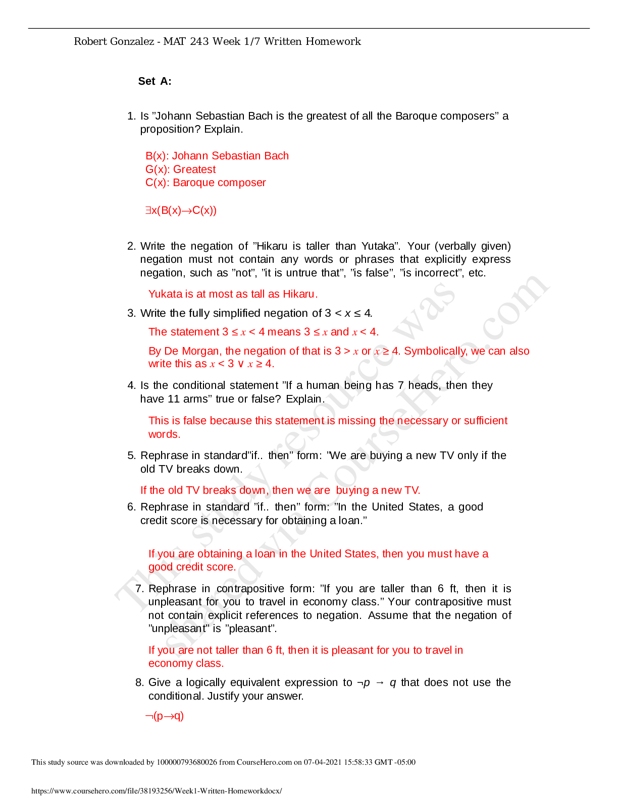 Mathematics > QUESTIONS & ANSWERS > Arizona State University MAT 243 Week1_Written Homework-QUESTIONS WITH VERIFIED ANSWERS (All)
