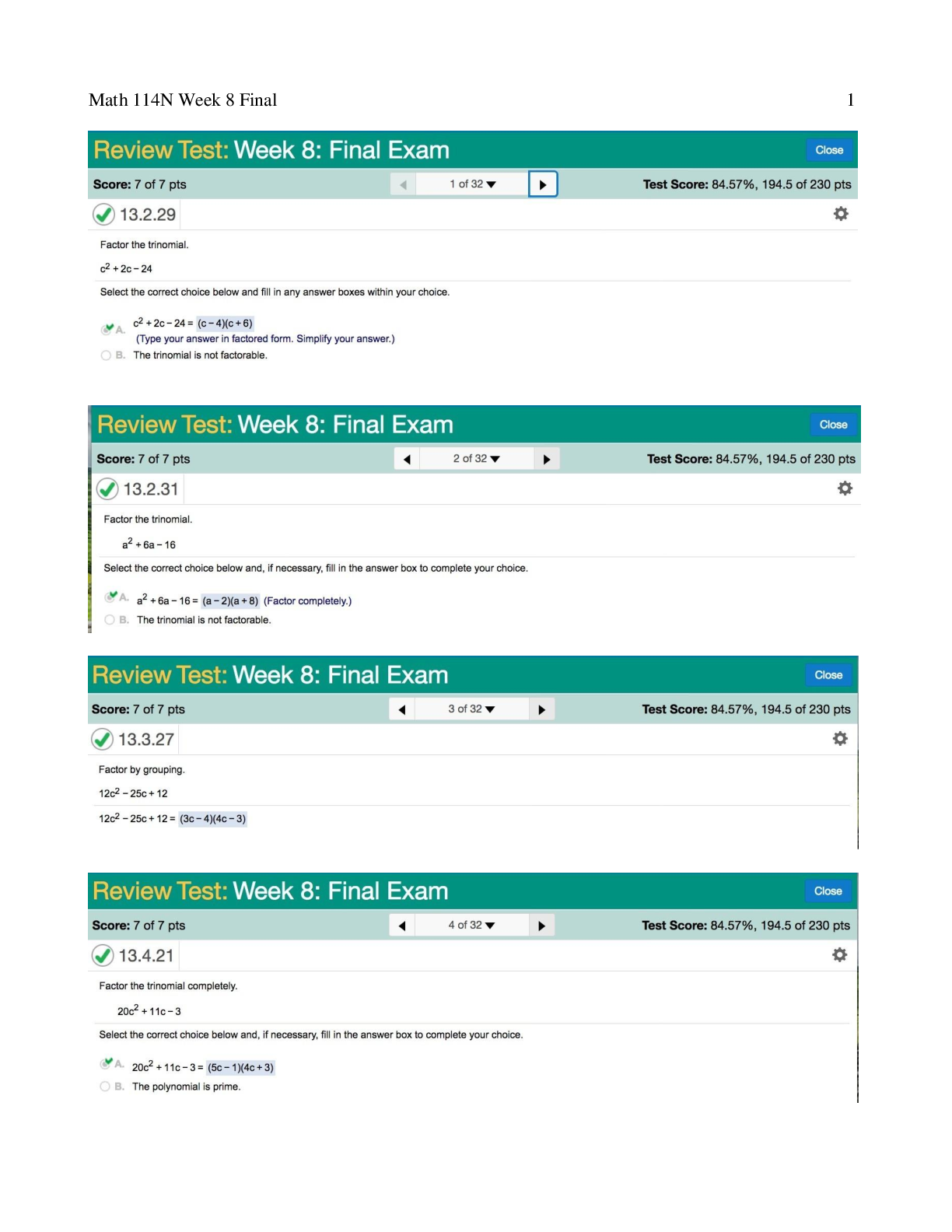 Mathematics > EXAM > CHAMBERLAIN COLLEGE OF NURSING MATHS 114 WEEK 8 FINAL EXAM LATEST AND GRADED A (All)
