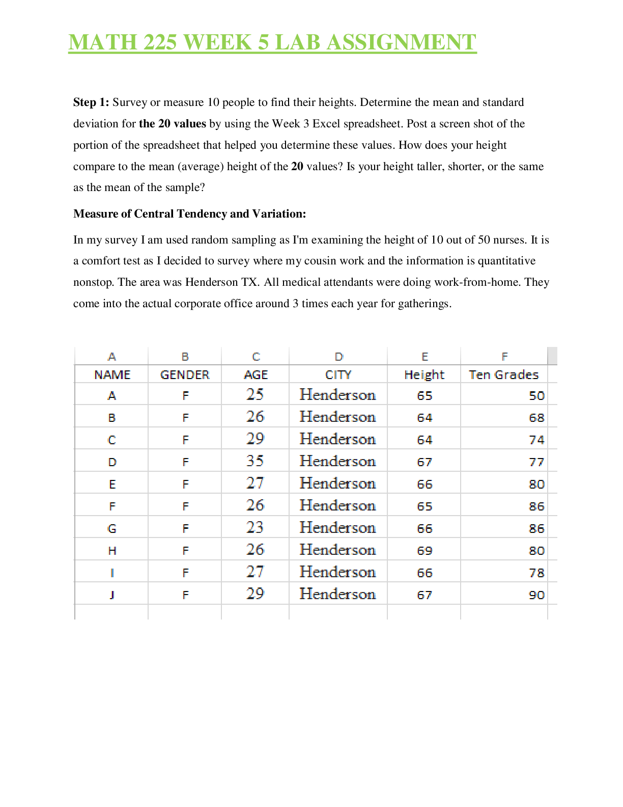 Mathematics > EXAM > MATH 225 WEEK 5 LAB ASSIGNMENT VERIFIED A+ CHAMBERLAIN COLLEGE (All)