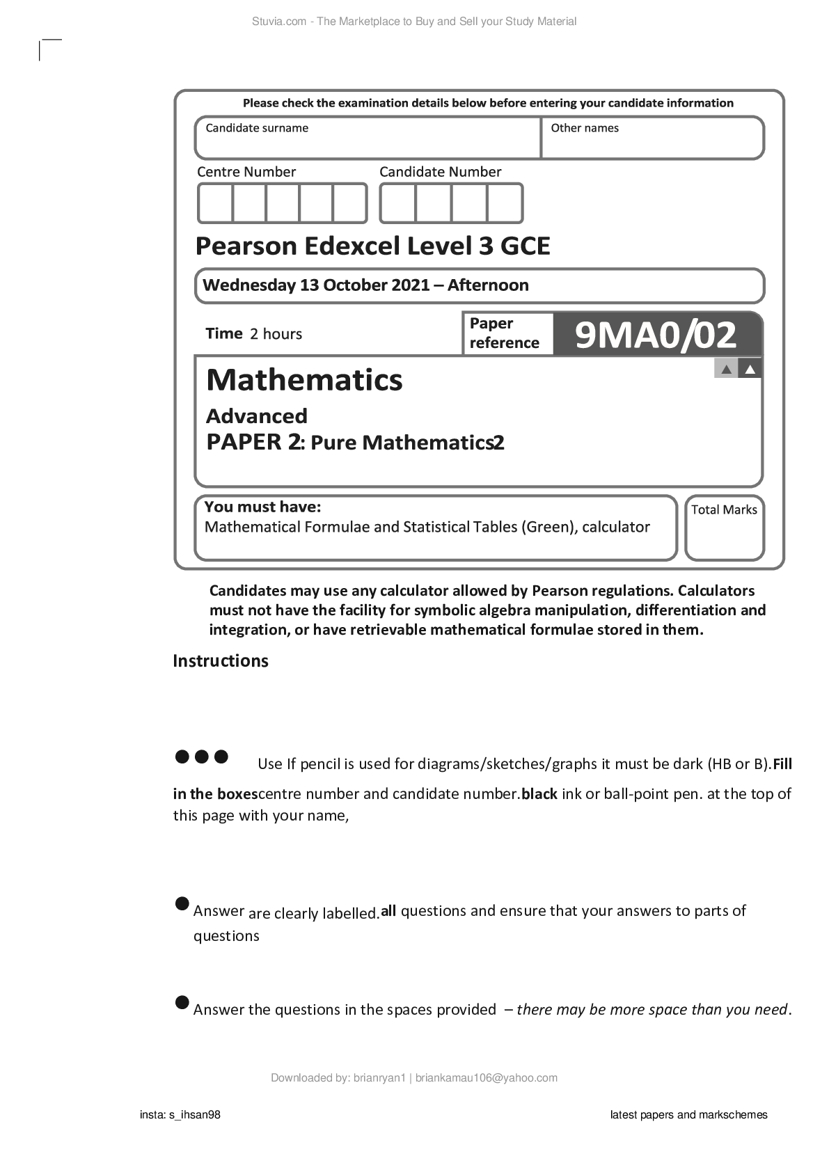Mathematics > Edexcel Question Paper > Edexcel Maths A Level Paper 31 Statistics QP (All)