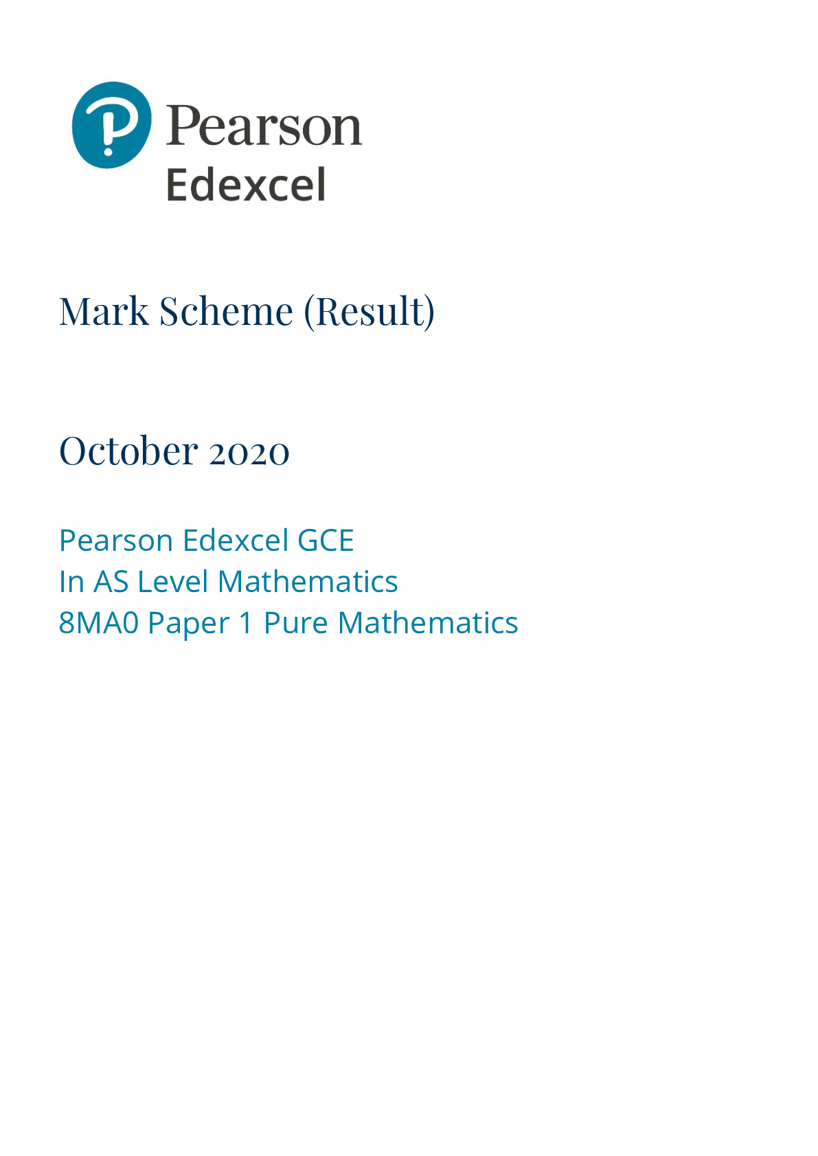 Mathematics > Edexcel > Pearson Edexcel_Further Mathematics_8MA0/01 Mark Scheme_2020 | Paper 1 Pure Mathematics (All)