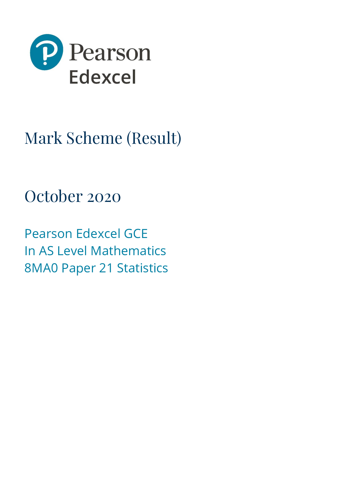 Mathematics > Edexcel > Pearson Edexcel_Further Mathematics_8MA0/21 Mark Scheme_2020 | Paper 21 Statistics (All)