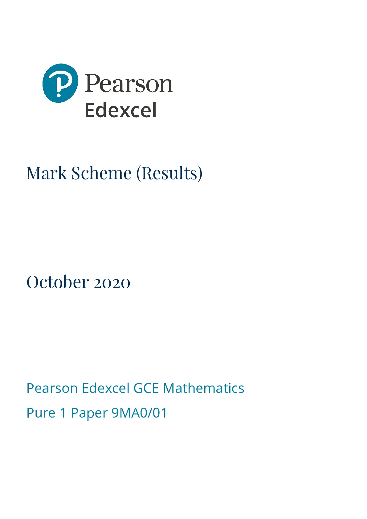 Mathematics > Edexcel > Pearson Edexcel_Further Mathematics_9MA0/01 Mark Scheme_2020 | Pure Mathematics 1 (All)
