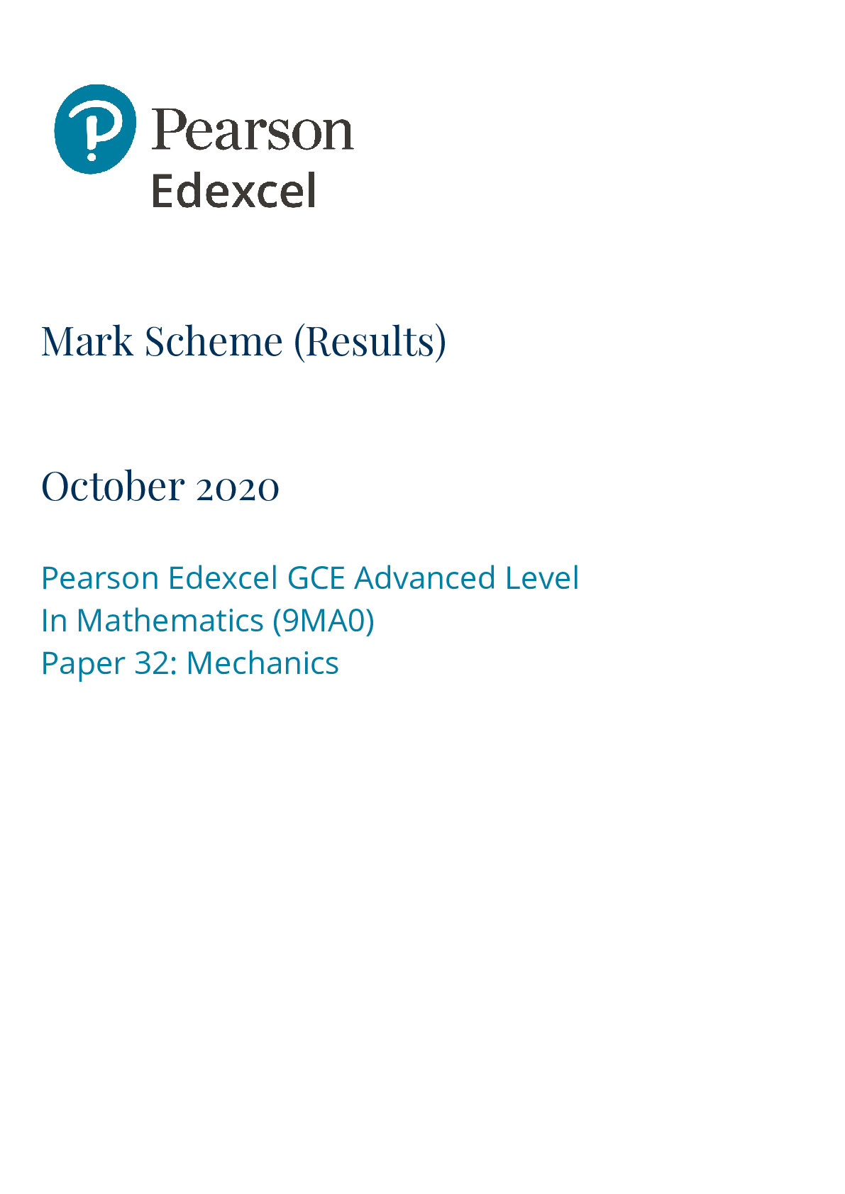 Mathematics > Edexcel > Pearson Edexce_Further Mathematics_9MA0/32 Mark Scheme_2020 | Paper 32: Mechanics (All)