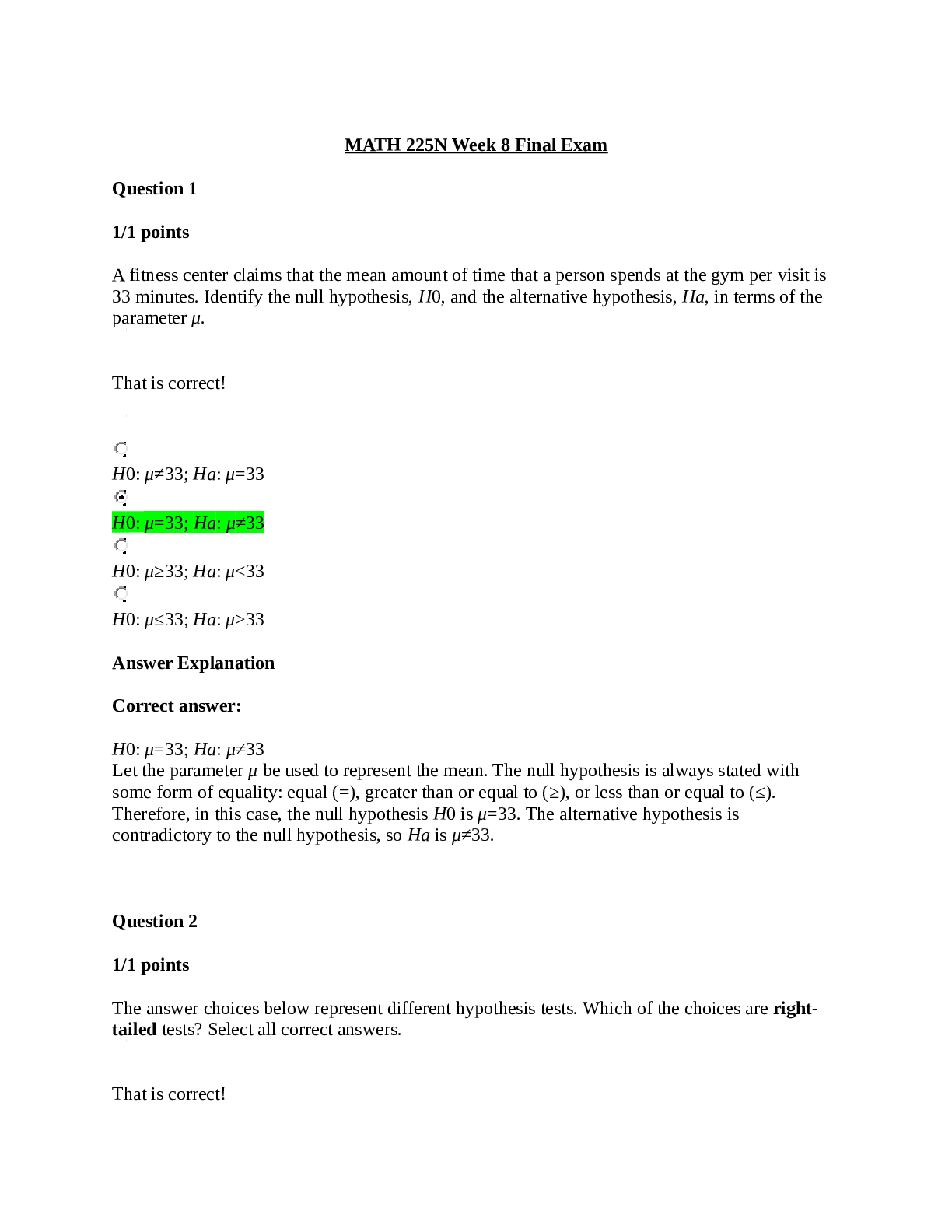 Mathematics > EXAM > MATH 225N Week 8 Assignment Linear Regression Equations | Questions and Answer elaborations | Already GRADED A (All)