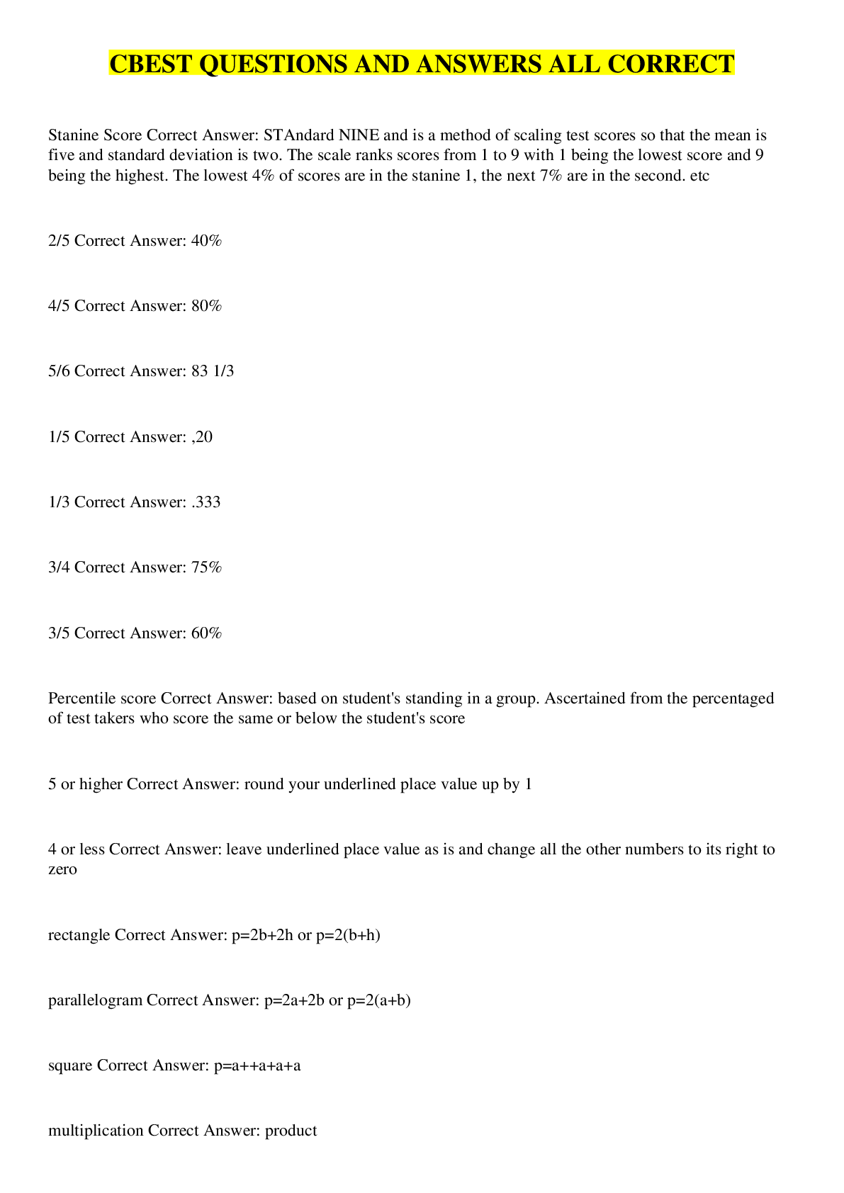 Mathematics > EXAM > CBEST QUESTIONS AND ANSWERS ALL CORRECT (All)