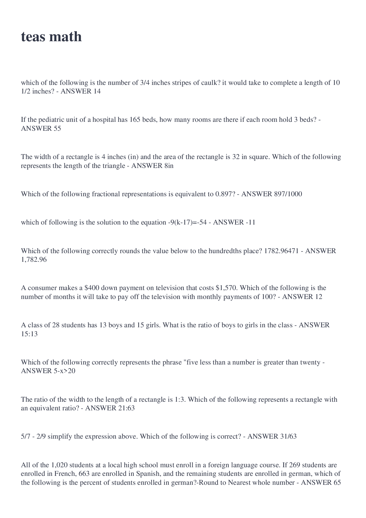 Mathematics > QUESTIONS & ANSWERS > teas math 2022/2023 (All)
