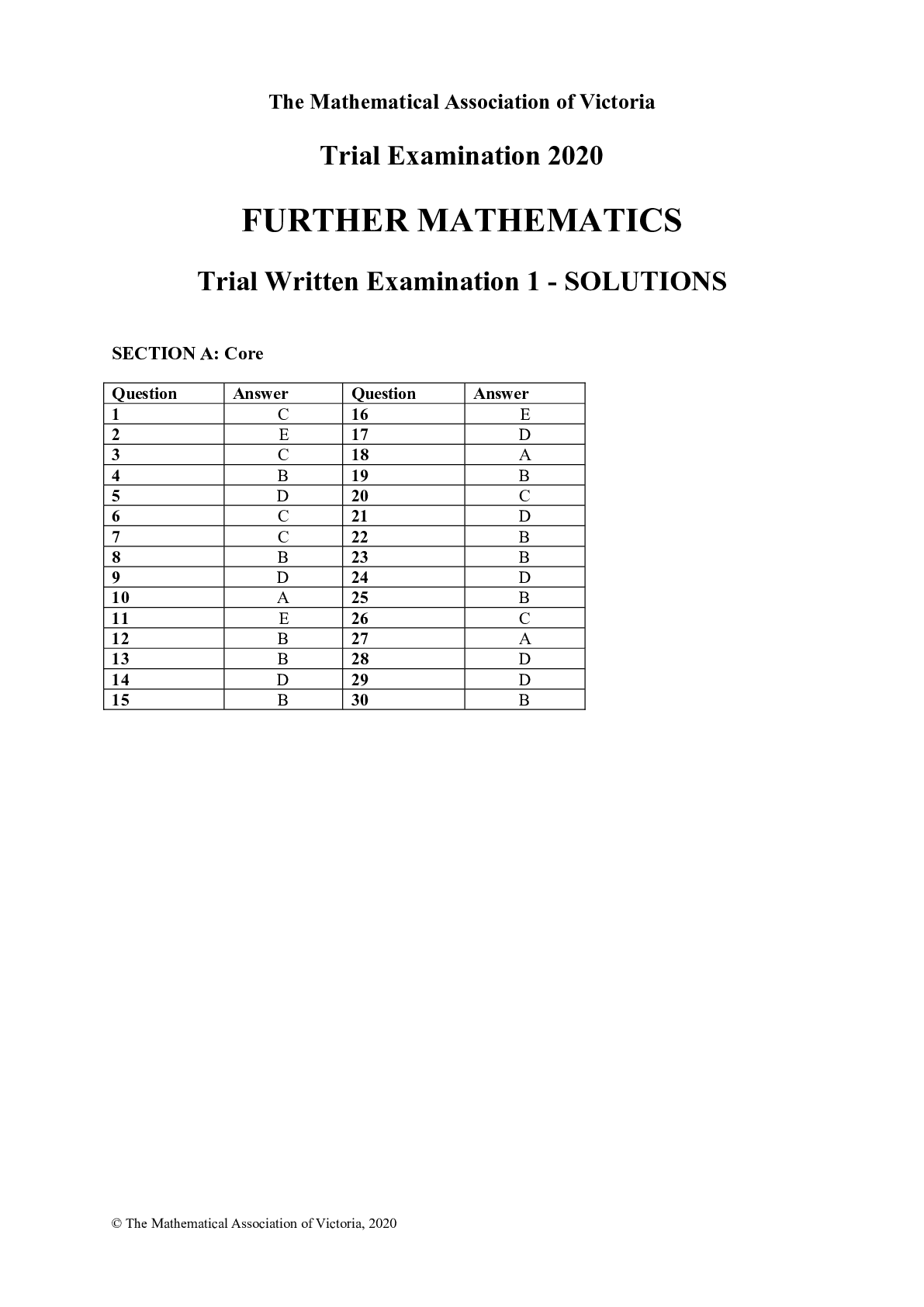 Mathematics > SOLUTIONS MANUAL > Solutions Manual > The Mathematical Association of Victoria Trial Examination 2020 FURTHER MATHEMATICS Trial Written Examination 1 - SOLUTIONS (All)
