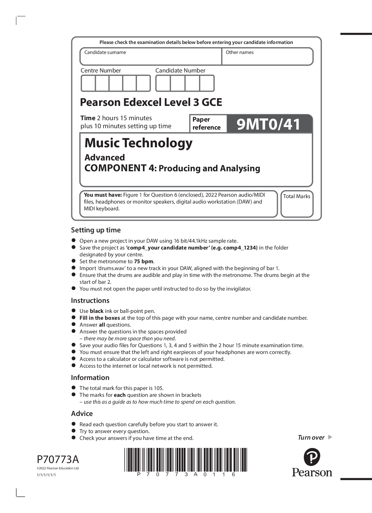 Mathematics > A-Level Question Paper > EDEXCEL A LEVEL JUNE 2022 MUSIC TECHNOLOGY QUESTION PAPER 2 (All)