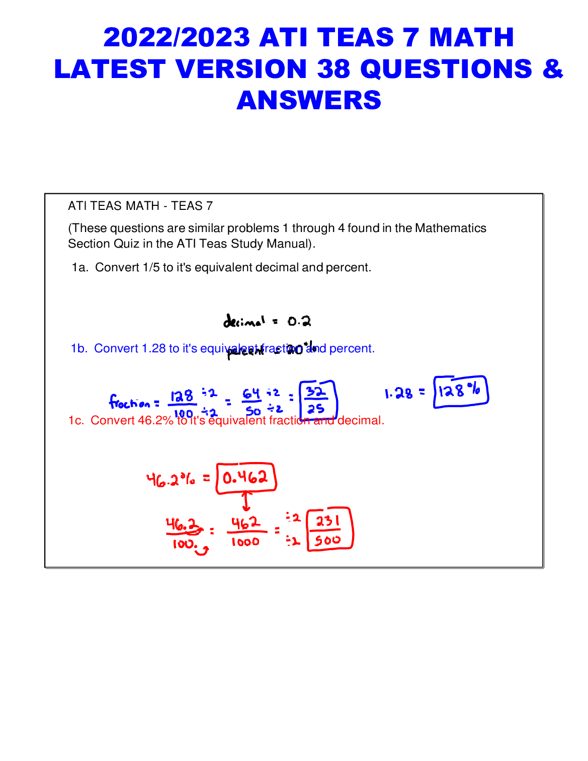 Mathematics > ATI > 2023/2024 ATI TEAS 7 MATH LATEST VERSION 38 QUESTIONS & ANSWERS. (All)