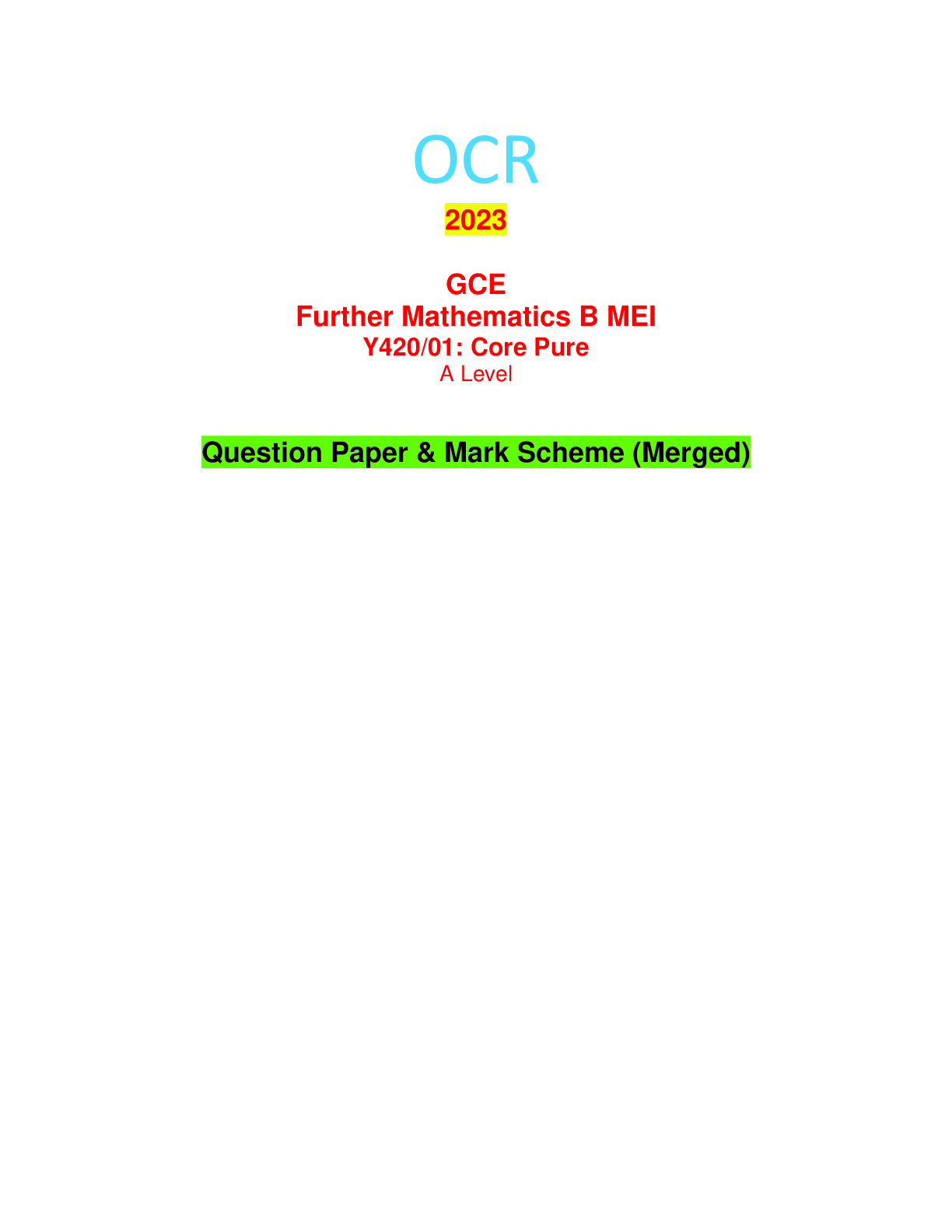 OCR > EXAM > 2023 GCE Further Mathematics B MEI Y420/01: Core Pure A Level Question Paper & Mark Scheme (Merged) (All)