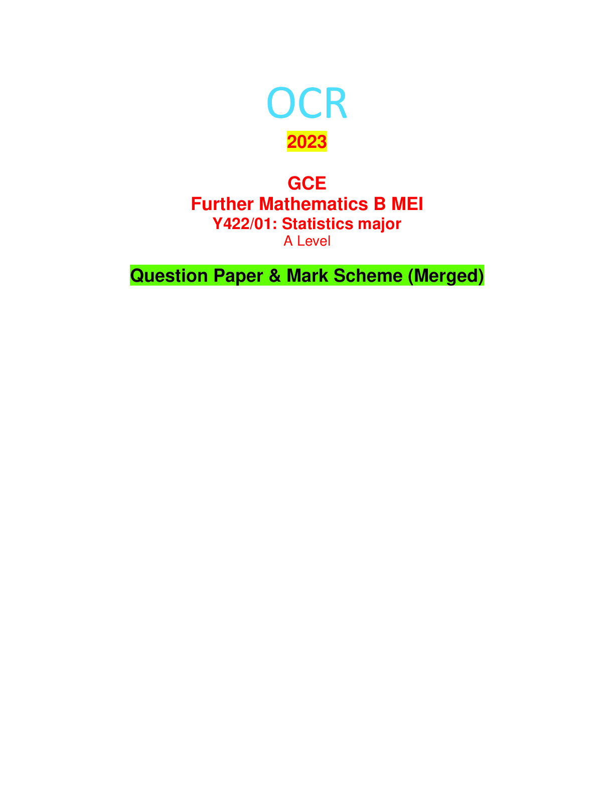 OCR > EXAM > 2023 GCE Further Mathematics B MEI Y422/01: Statistics major A Level Question Paper & Mark Scheme (Merged) (All)