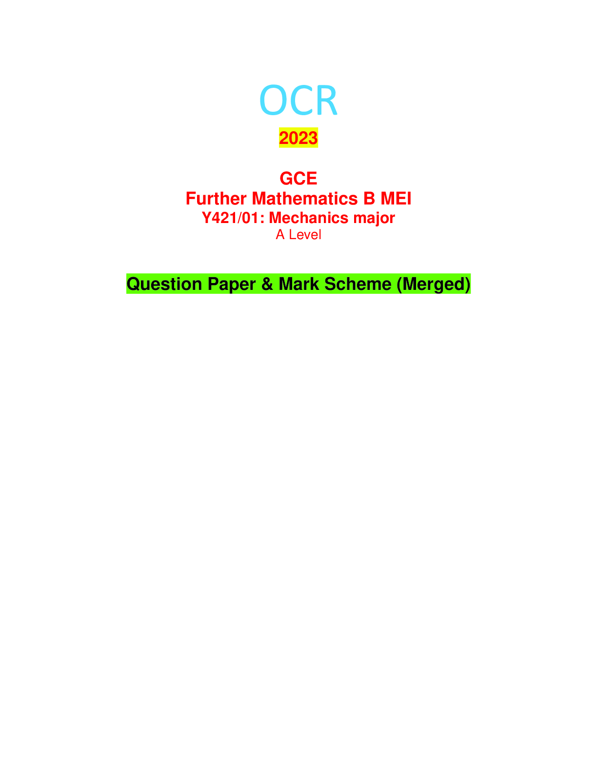 OCR > EXAM > 2023 GCE Further Mathematics B MEI Y421/01: Mechanics major A Level Question Paper & Mark Scheme (Merged) (All)