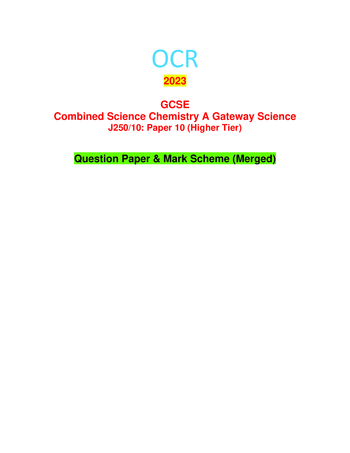 OCR > EXAM > 2023 GCSE Combined Science Chemistry A Gateway Science J250/10: Paper 10 (Higher Tier) Question Paper & Mark Scheme (Merged) (All)