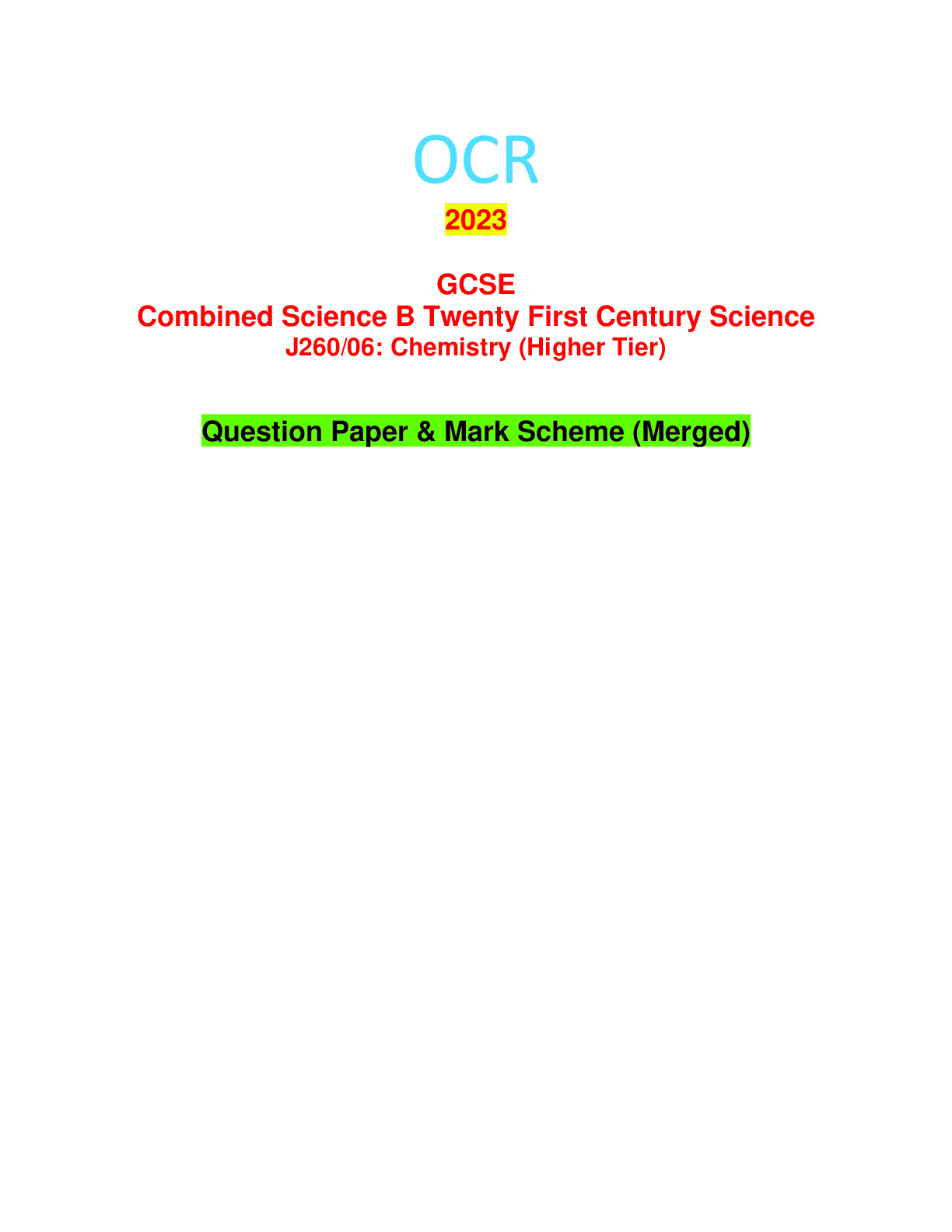 OCR > EXAM > 2023 GCSE Combined Science B Twenty First Century Science J260/06: Chemistry (Higher Tier) Question Paper & Mark Scheme (Merged) (All)
