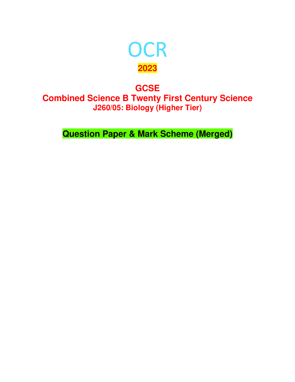 OCR > EXAM > 2023 GCSE Combined Science B Twenty First Century Science J260/05: Biology (Higher Tier) Question Paper & Mark Scheme (Merged) (All)