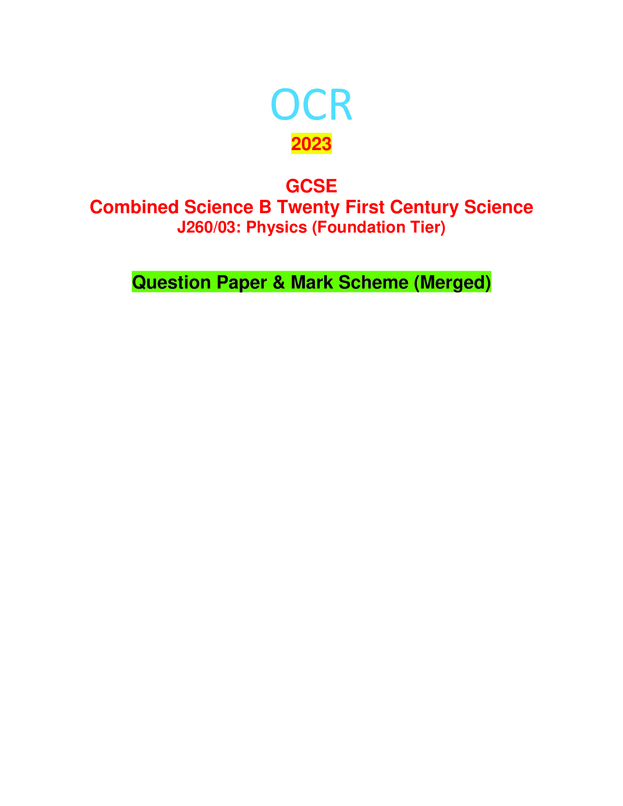 OCR > EXAM > 2023 GCSE Combined Science B Twenty First Century Science J260/03: Physics (Foundation Tier) Question Paper & Mark Scheme (Merged) (All)