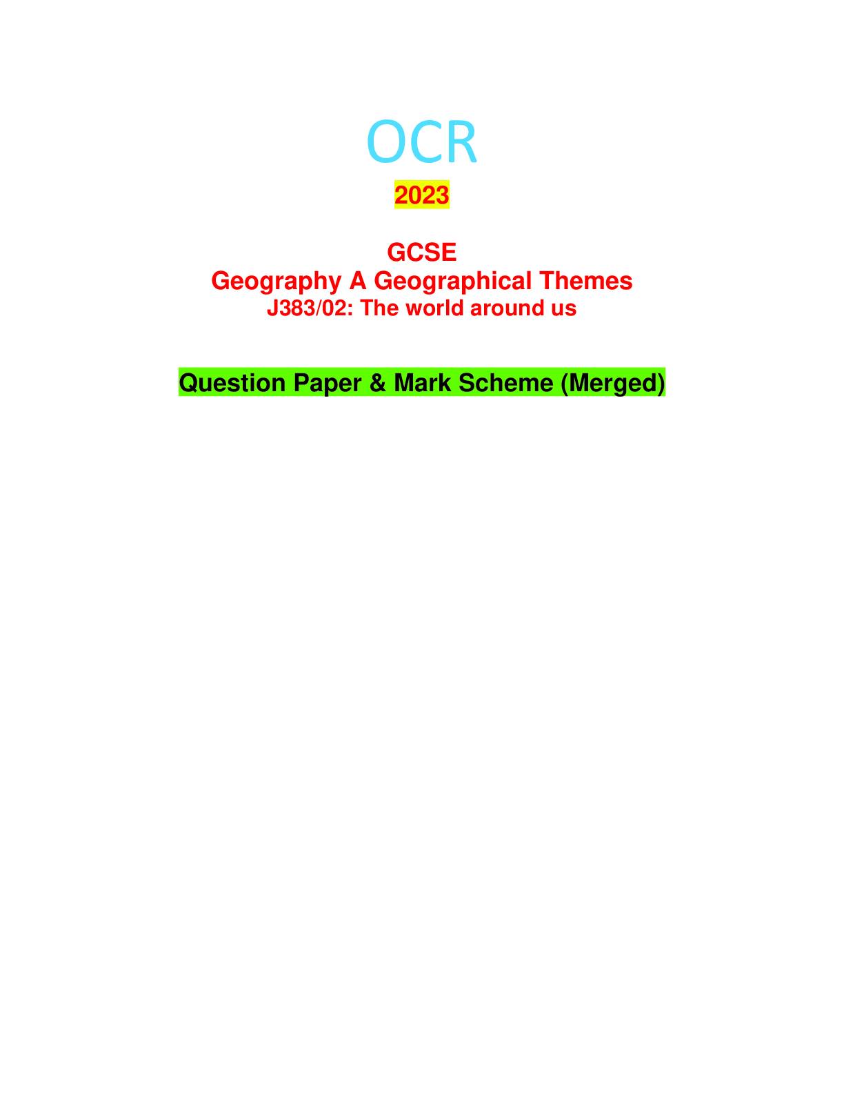 OCR > EXAM > 2023 GCSE Geography A Geographical Themes J383/02: The world around us Question Paper & Mark Scheme (Merged) (All)