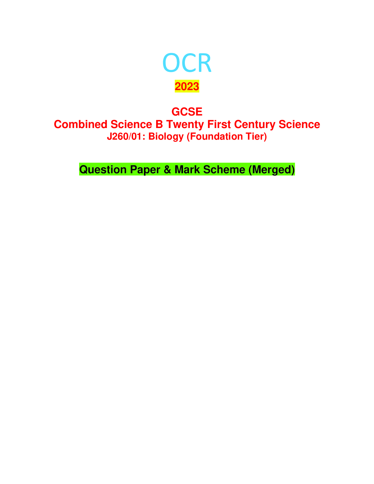 OCR > EXAM > 2023 GCSE Combined Science B Twenty First Century Science J260/01: Biology (Foundation Tier) Question Paper & Mark Scheme (Merged) (All)
