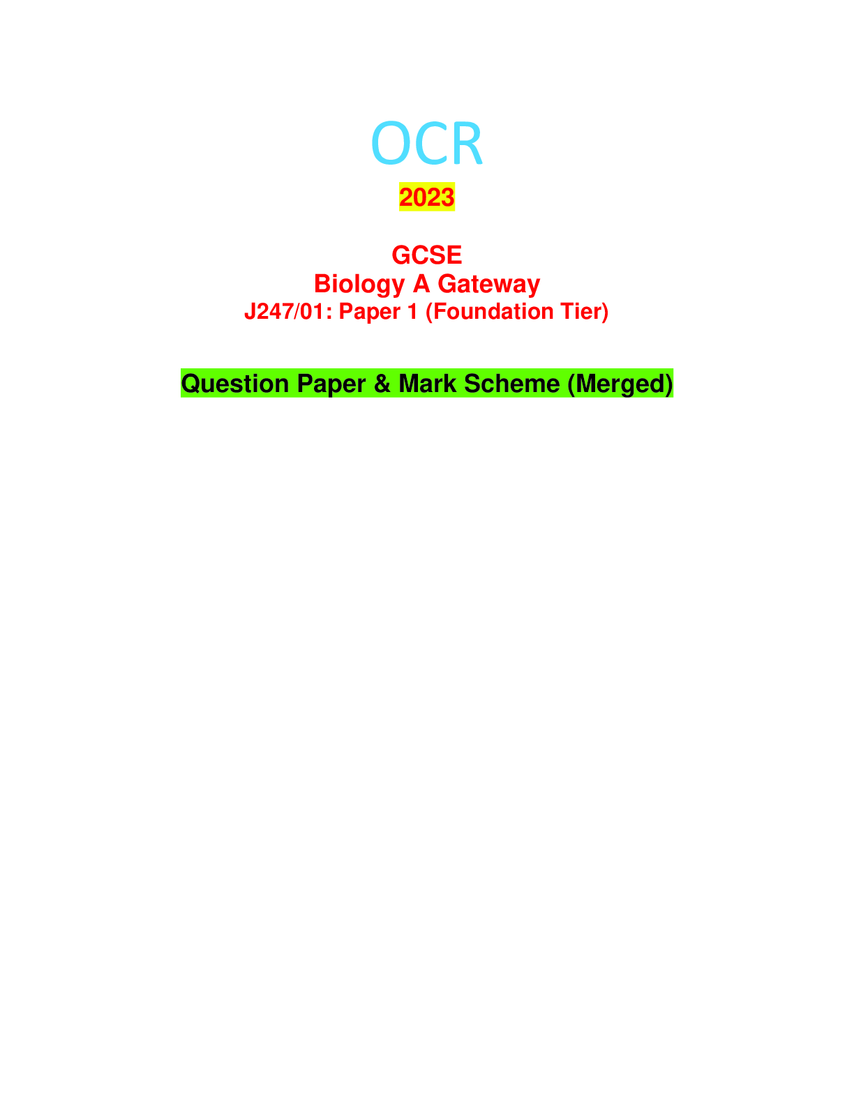 OCR > EXAM > 2023 GCSE Biology A Gateway J247/01: Paper 1 (Foundation Tier) Question Paper & Mark Scheme (Merged) (All)