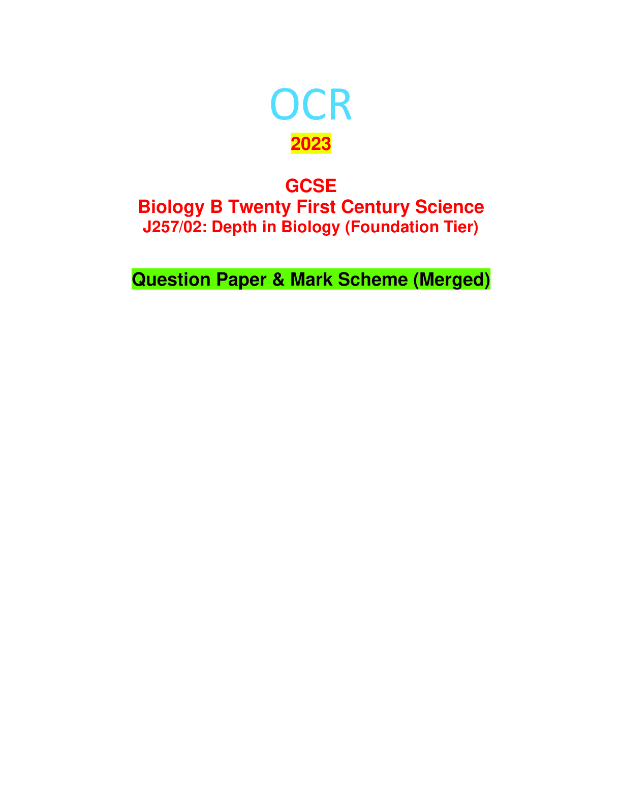 OCR > EXAM > 2023 GCSE Biology B Twenty First Century Science J257/02: Depth in Biology (Foundation Tier) Question Paper & Mark Scheme (Merged) (All)