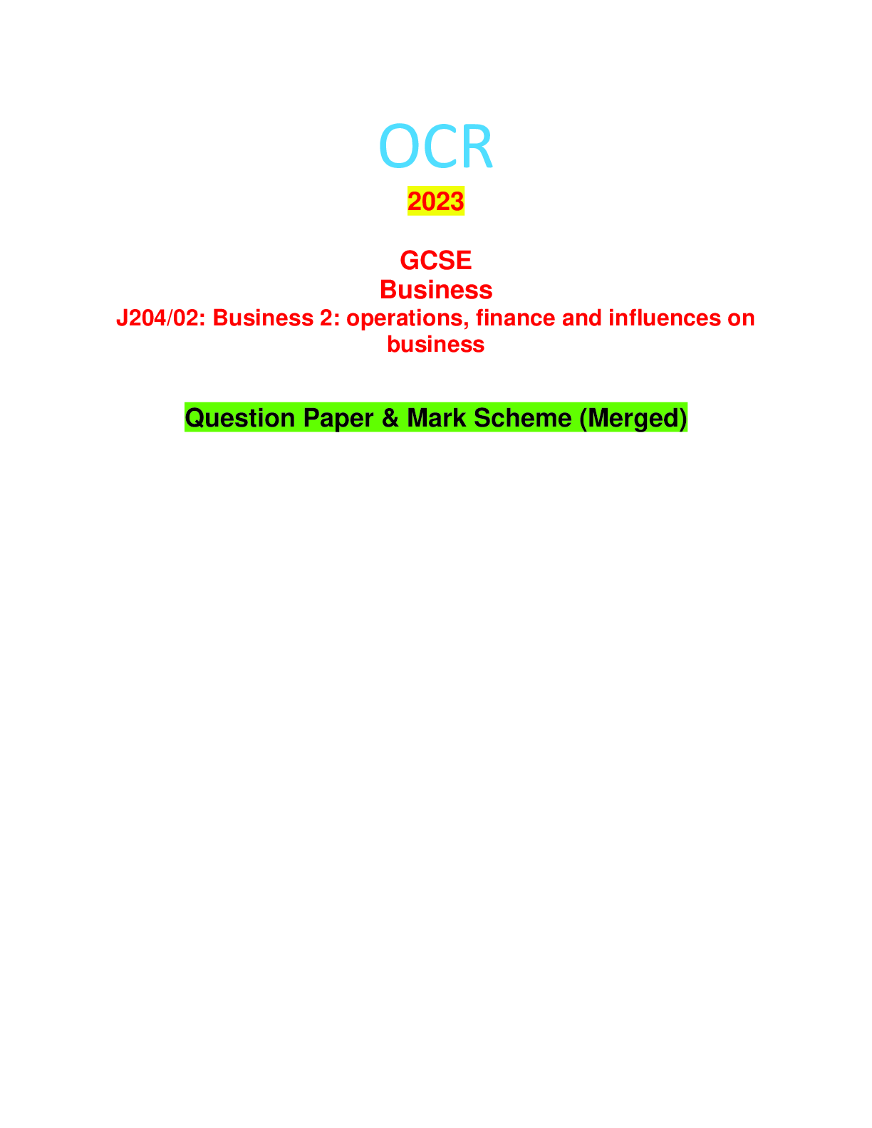 OCR > EXAM > 2023 GCSE Business J204/02: Business 2: operations, finance and influences on business Question Paper & Mark Scheme (Merged) (All)
