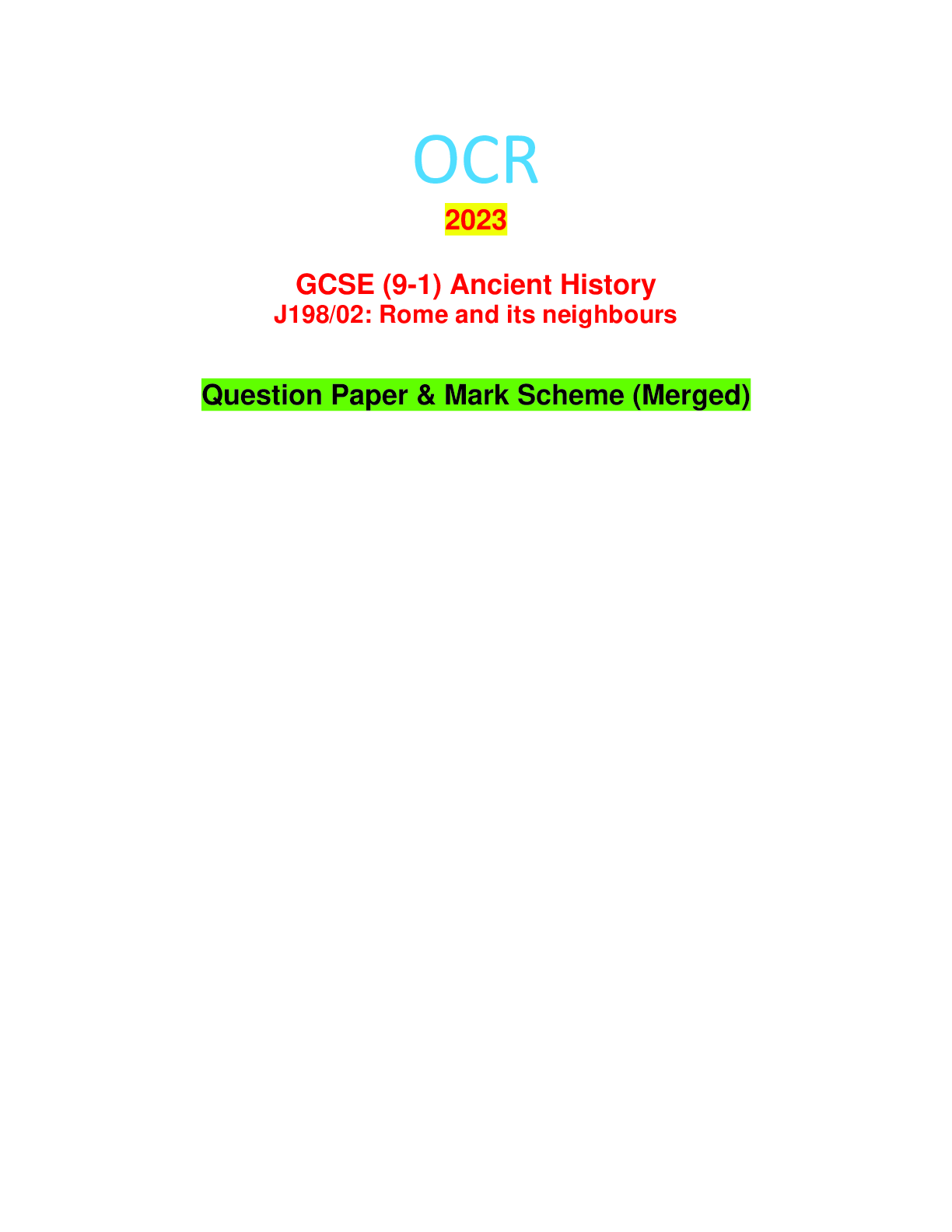OCR > EXAM > 2023 GCSE (9-1) Ancient History J198/02: Rome and its neighbours Question Paper & Mark Scheme (Merged) (All)
