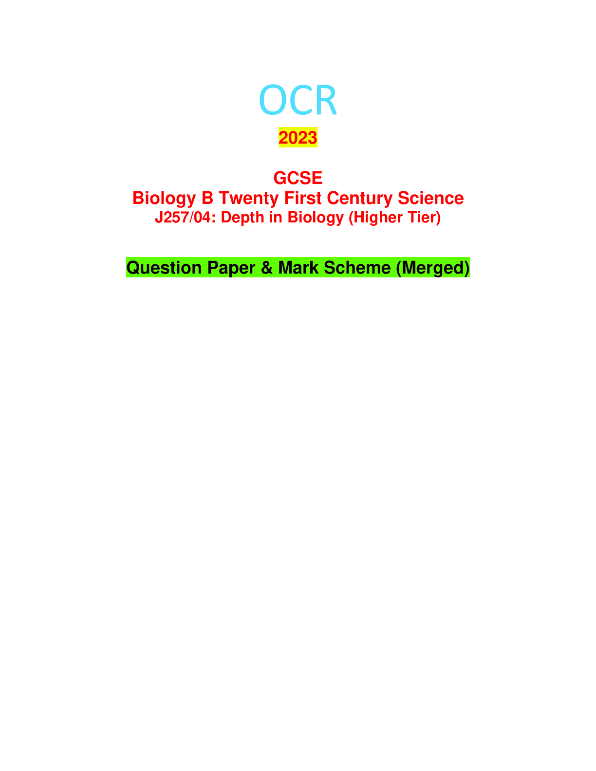 OCR > EXAM > 2023 GCSE Biology B Twenty First Century Science J257/04: Depth in Biology (Higher Tier) Question Paper & Mark Scheme (Merged) (All)