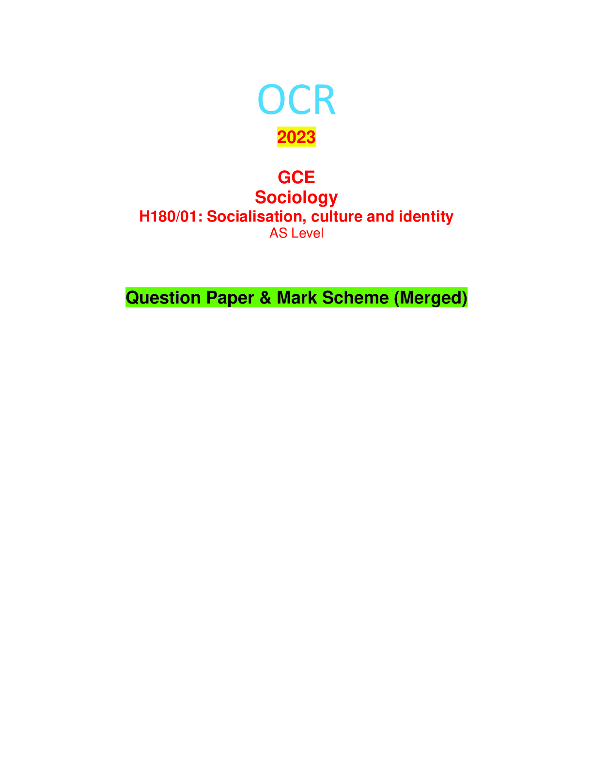 OCR > EXAM > 2023 GCE Sociology H180/01: Socialisation, culture and identity AS Level Question Paper & Mark Scheme (Merged) (All)
