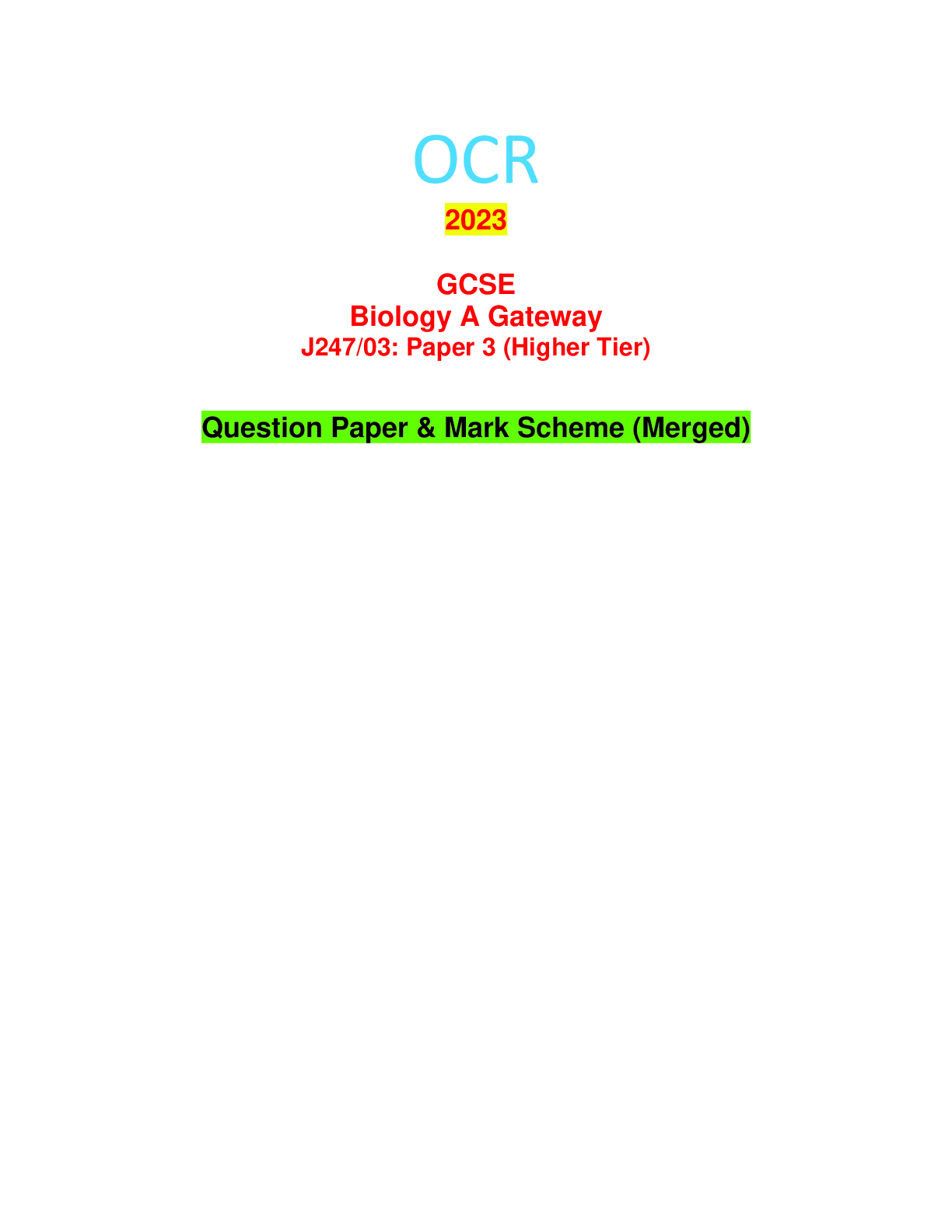 OCR > EXAM > 2023 GCSE Biology A Gateway J247/03: Paper 3 (Higher Tier) Question Paper & Mark Scheme (Merged) (All)