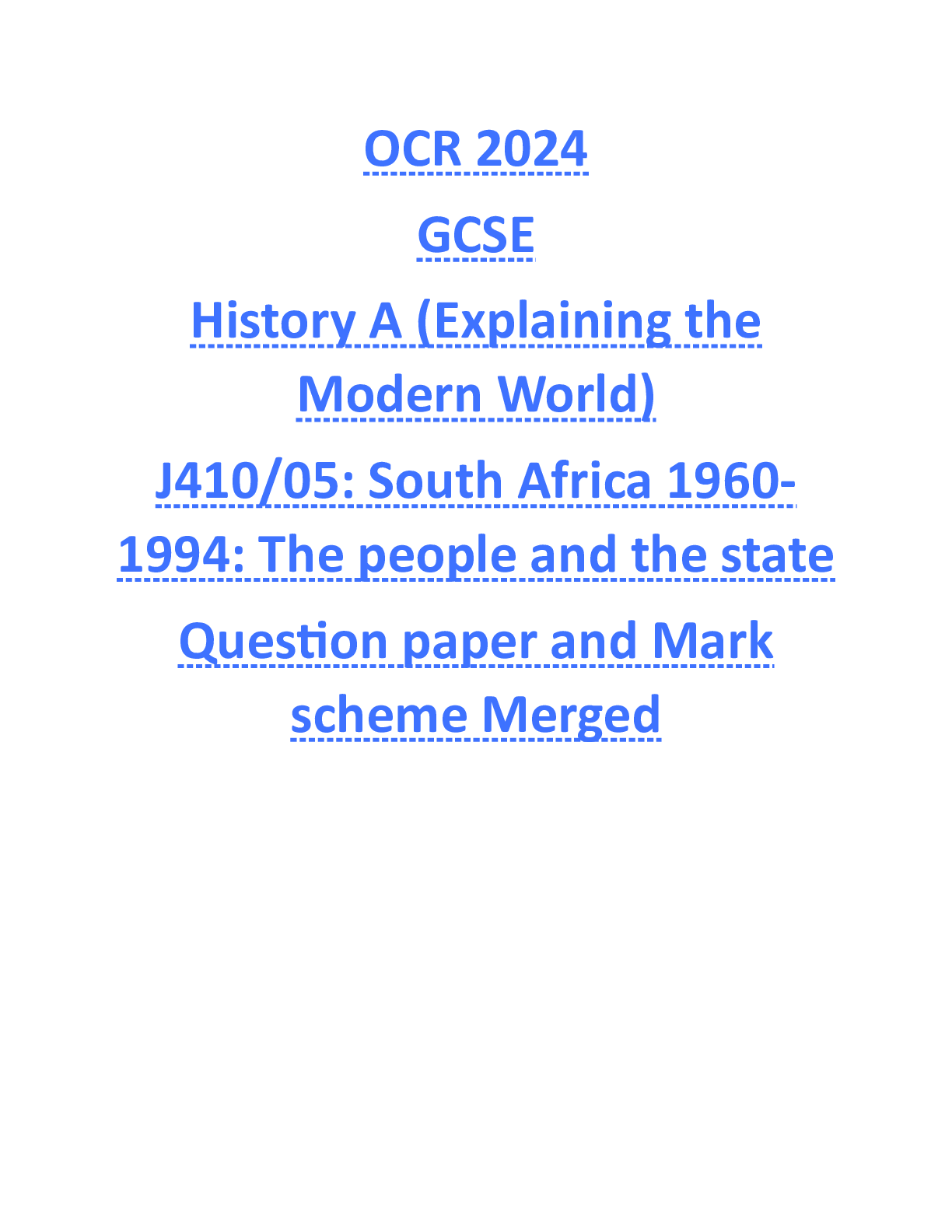 OCR > GCSE QUESTION PAPER > OCR 2024 GCSE History A (Explaining the Modern World) J410/05: South Africa 1960- 1994: The people and the state Question paper and Mark scheme Merged (All)