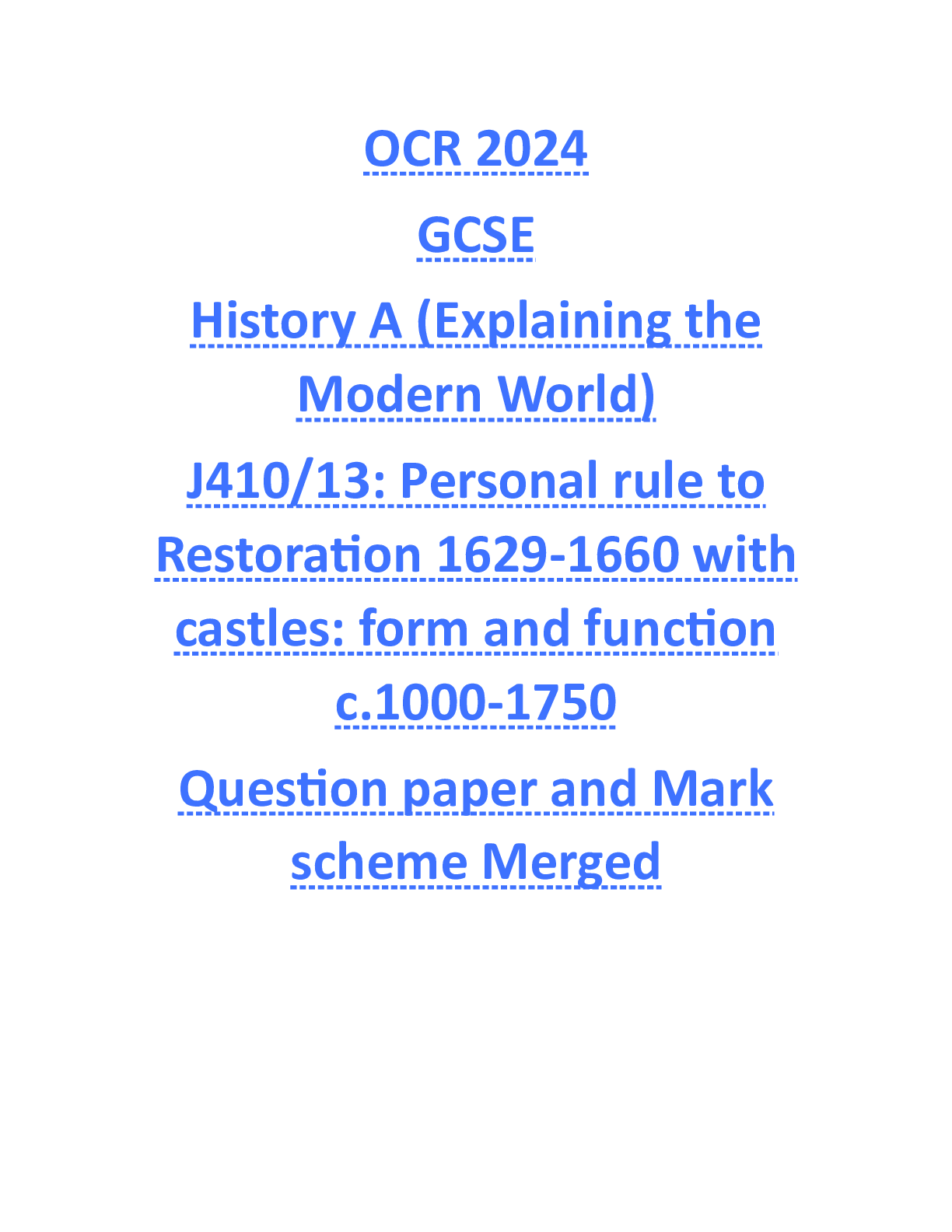 OCR > GCSE QUESTION PAPER > OCR 2024 GCSE History A (Explaining the Modern World) J410/13: Personal rule to Restoration 1629-1660 with castles: form and function c.1000-1750 Question paper and Mark scheme Merged (All)